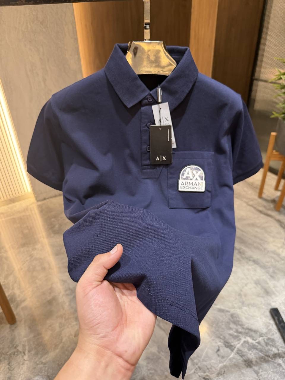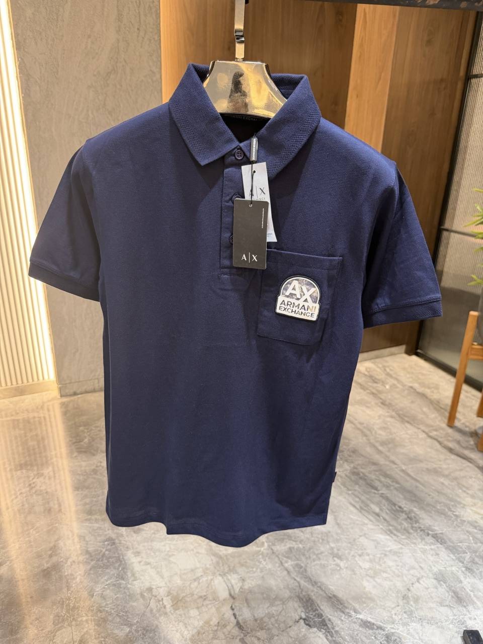Arman i exchange Navy Blue Polo Tshirt Pocket brand logo