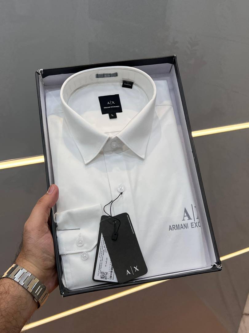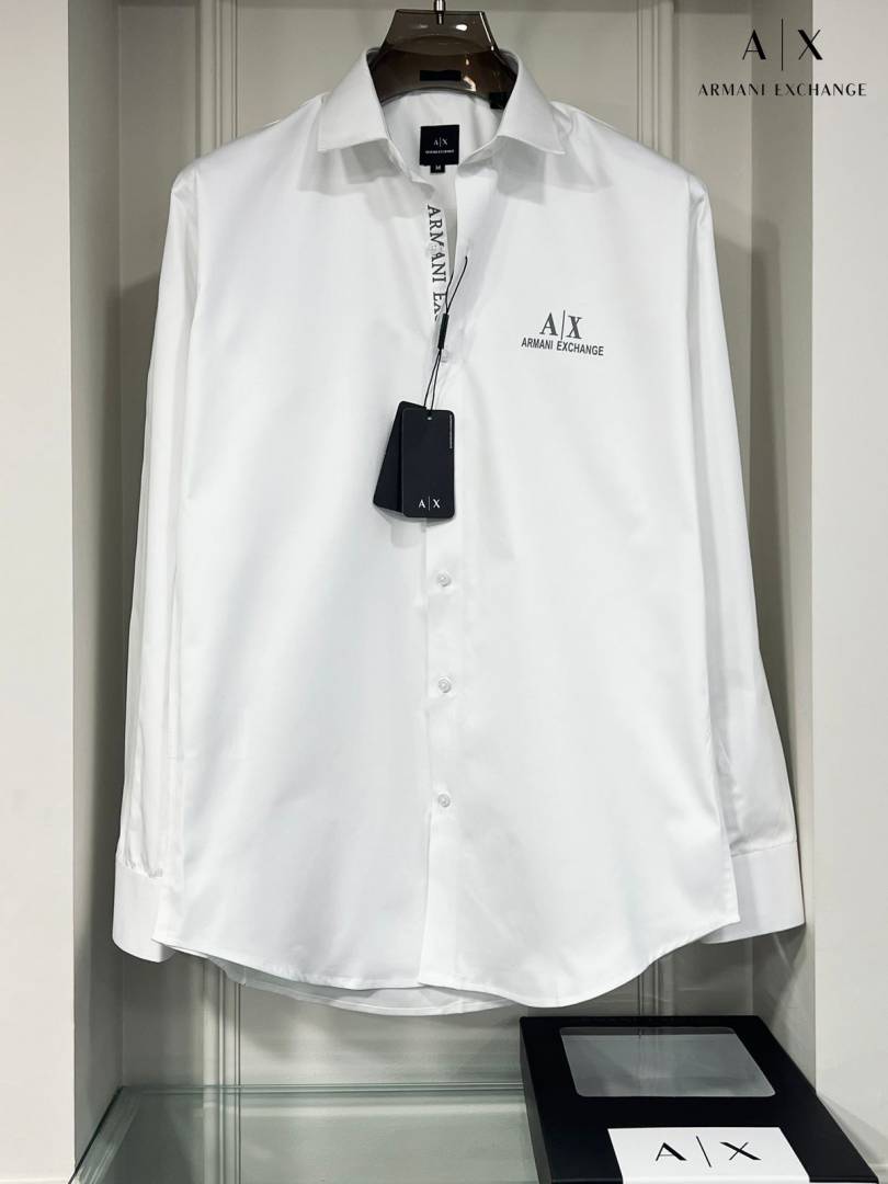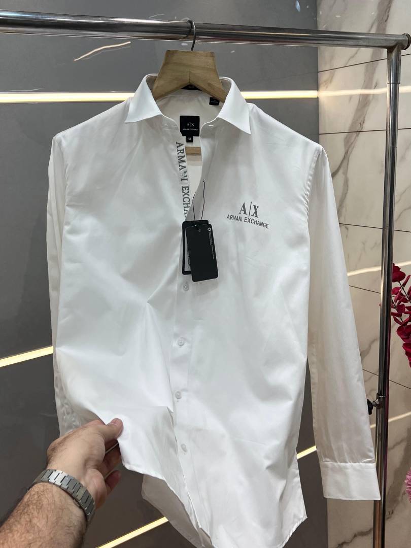 Arman i Exchange White Premium Imported Reflective Printed Shirt with with custom Branded Button Tagging And Brand Packing 3286
