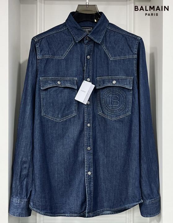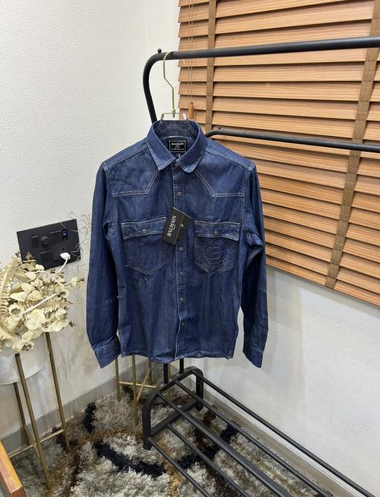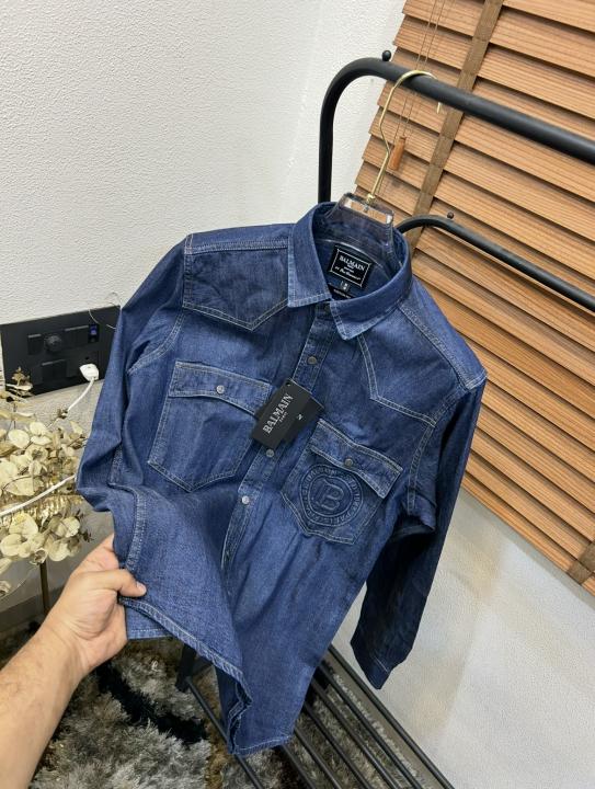 Balmai_n Navy Blue Imported Denim Fabric Monogram Embossed Premium Shirt