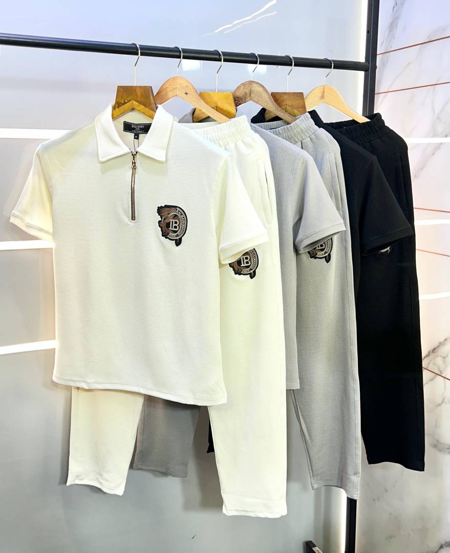 Balmai n Paris Grey Imported Embroidery Logo Premium Track Suit Brand Carry Bag Packing F3017-GY