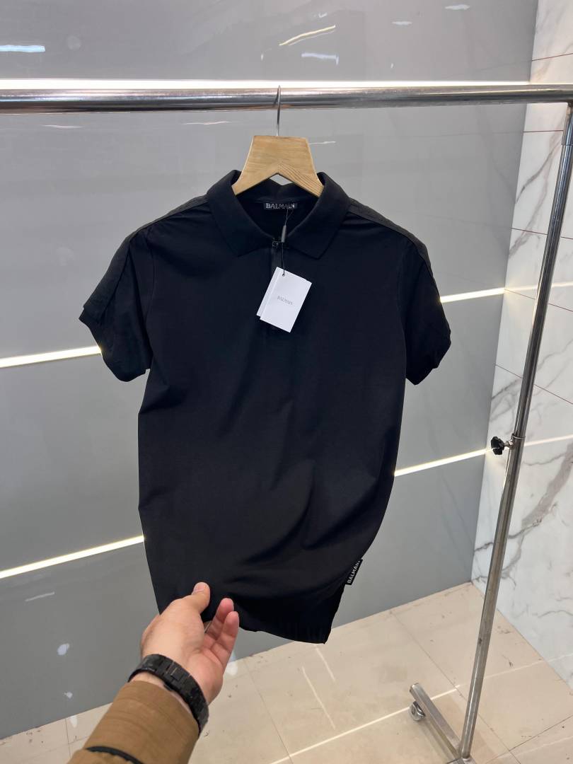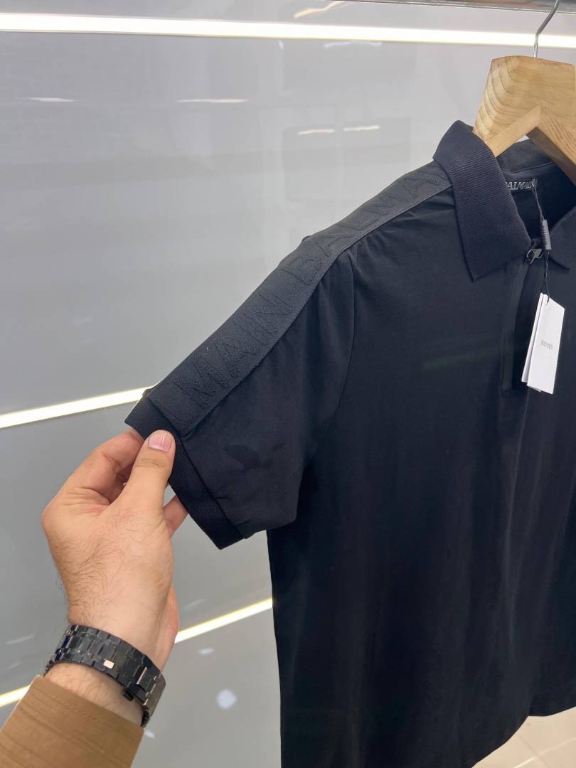 Balmai n Paris Black Premium 240 GSM Fabric Polo T-shirt with Shoulder Strip Zip Style 383
