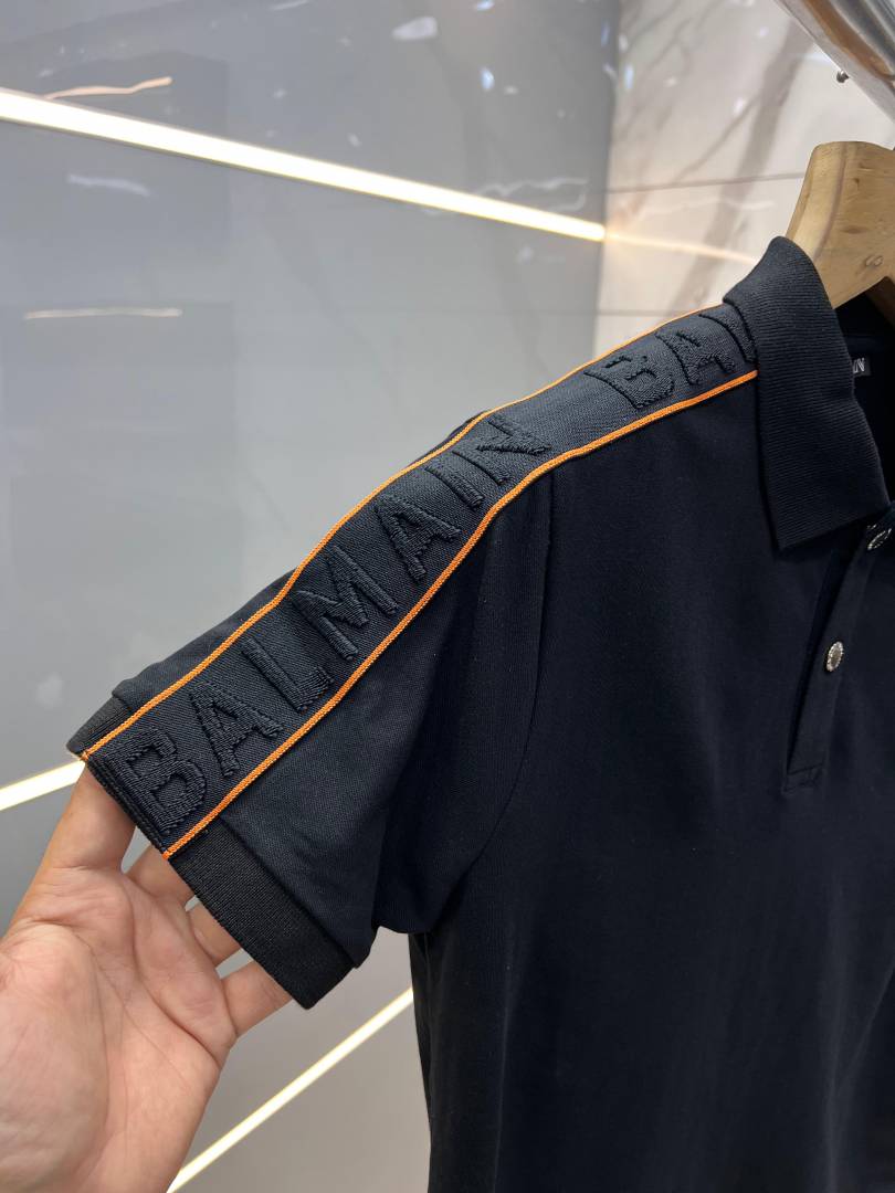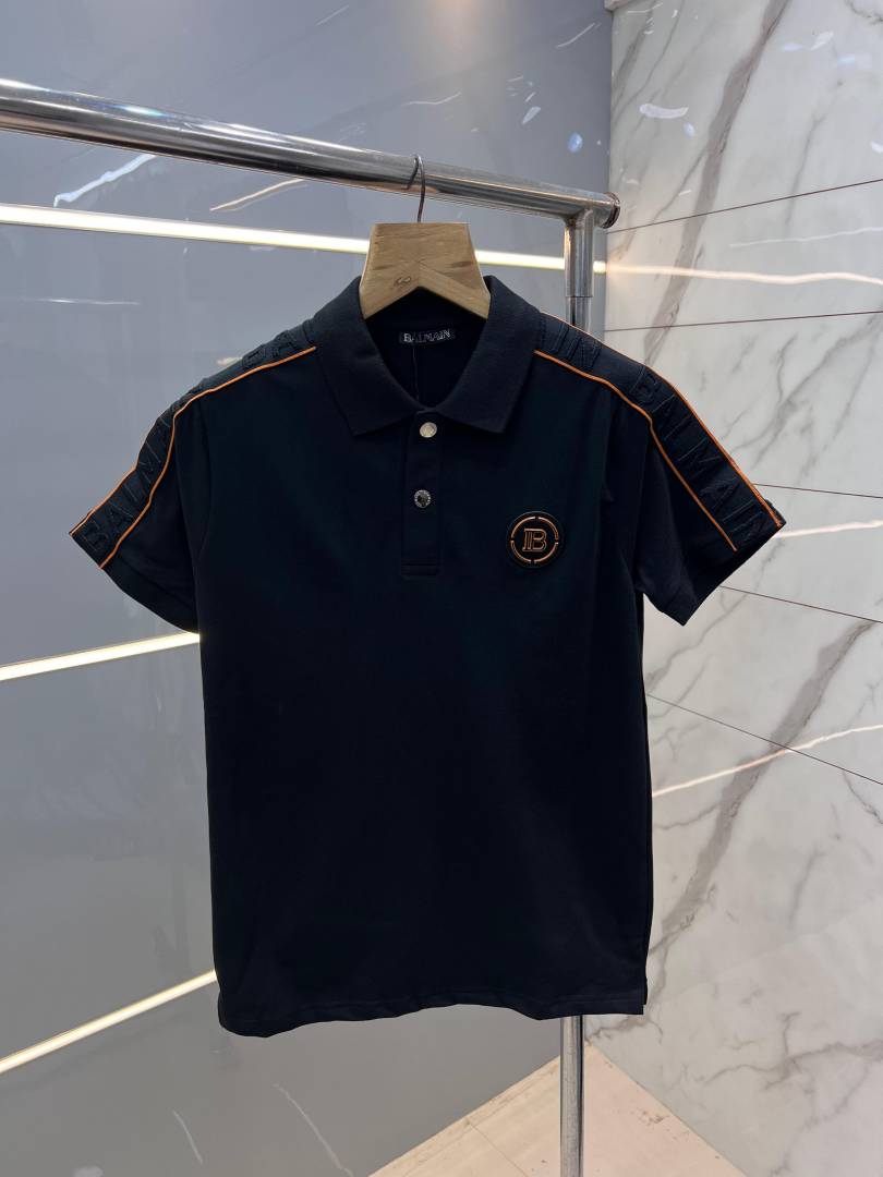 Balmai n Paris Black Premium Imported Pique Polo Tshirt with Shoulder Strip And Rubber Logo 2722