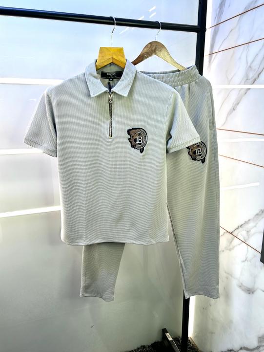 Balmai n Paris Grey Imported Embroidery Logo Premium Track Suit Brand Carry Bag Packing F3017-GY