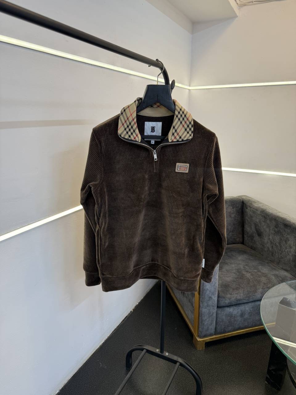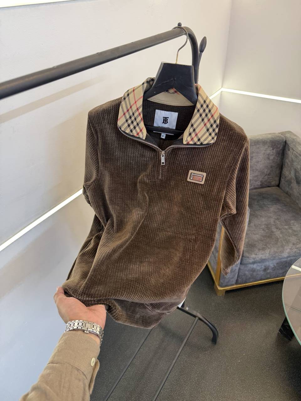 ? *Burberry woollen blend knitted imported collar sweatshirt with steel logo on chest and brand zip now in stock*?