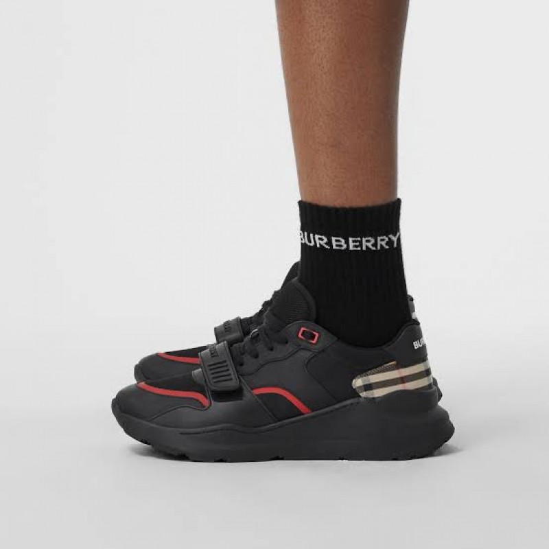 Burberry Vintage Check Leather And Mesh Black Sneaker