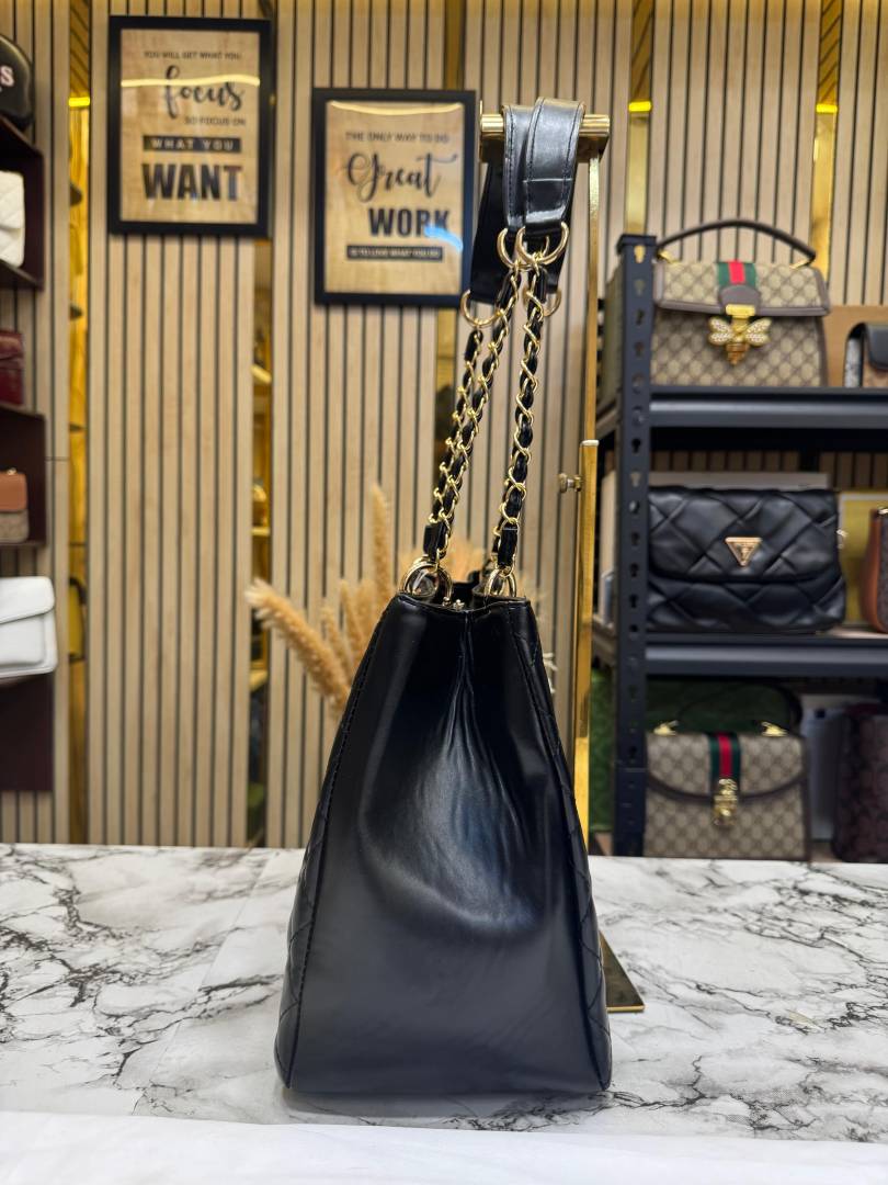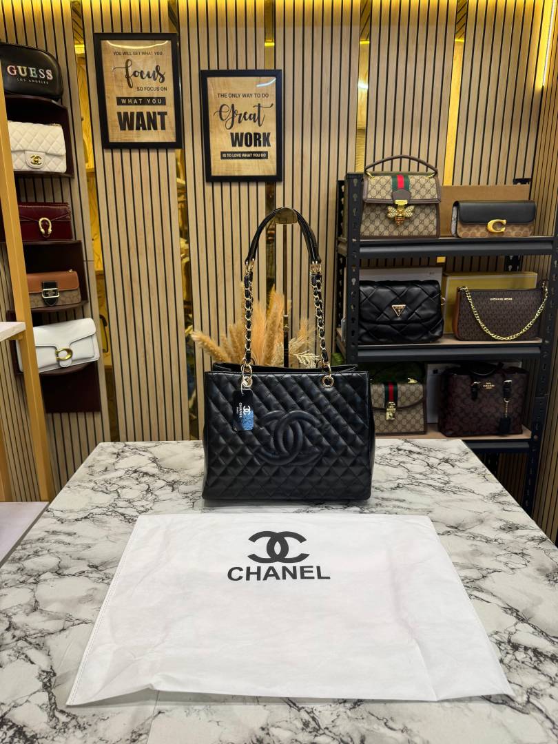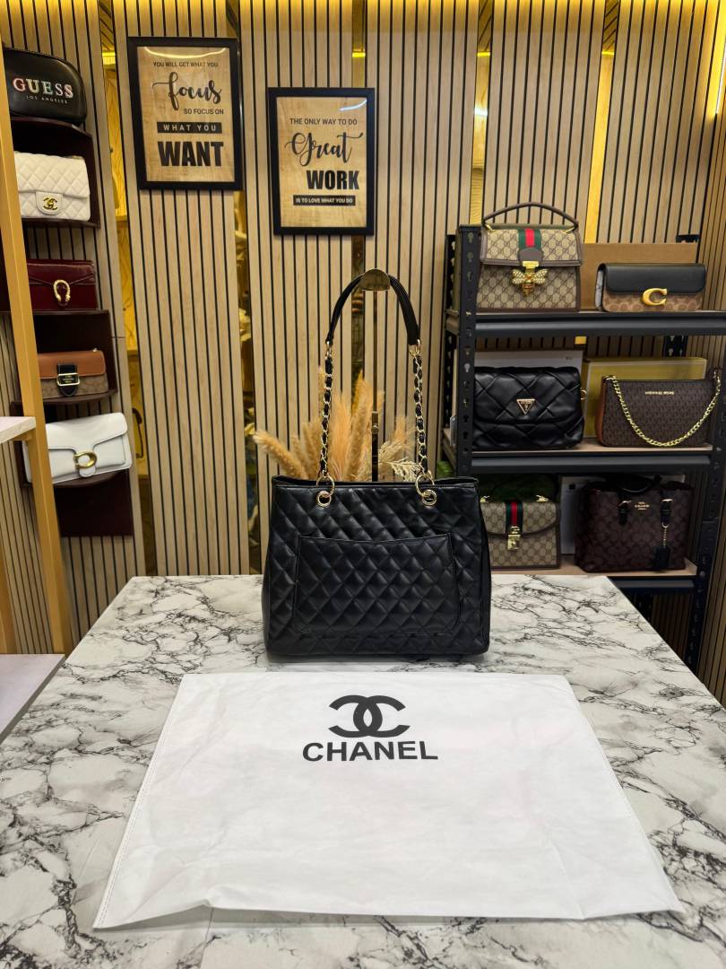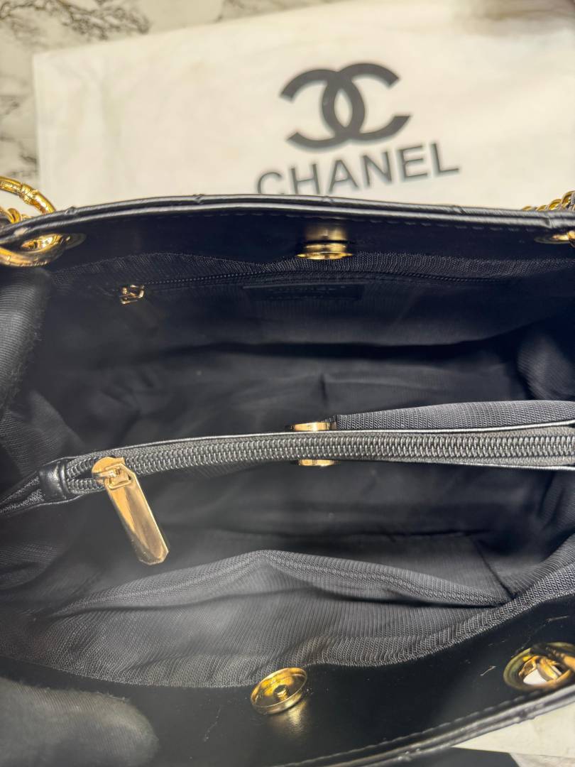 • Chane_l Quilted CC Chain Tote Bag With Dust Bag Black