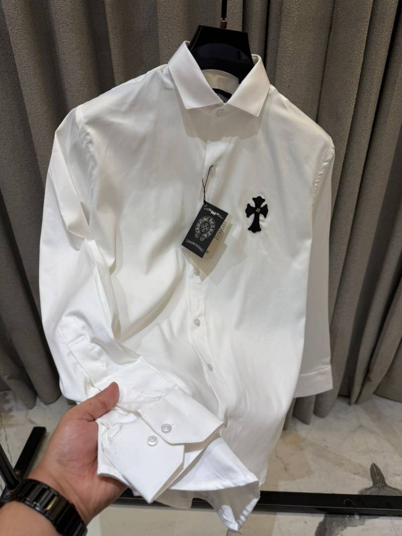 Chrome Heart Chest Logo Full Sleeves Shirt White
