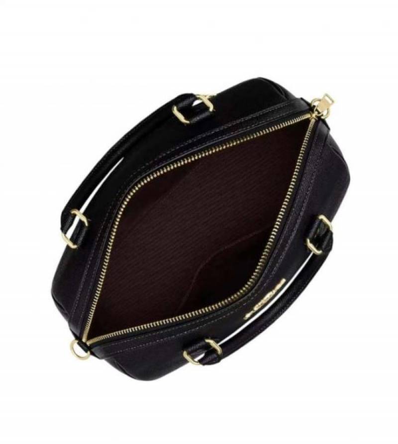 COAC_H Black Rowan Logo Leather Small Satchel with box 722