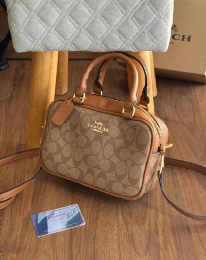 Coac_h Taupe Logo Mini Satchel with box 619