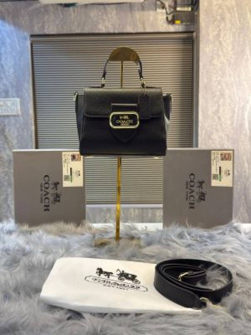 COAC_H Black Rowan Logo Leather Small Satchel with box 722