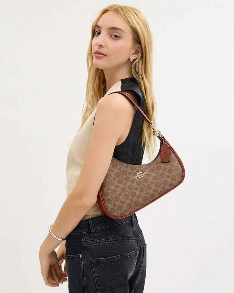• Coach_Twisted_Teri_Shoulder_Bag_Signature_Canvas_With_OG_Box_Carry_Bag_CB102_Khakhi_Brown
