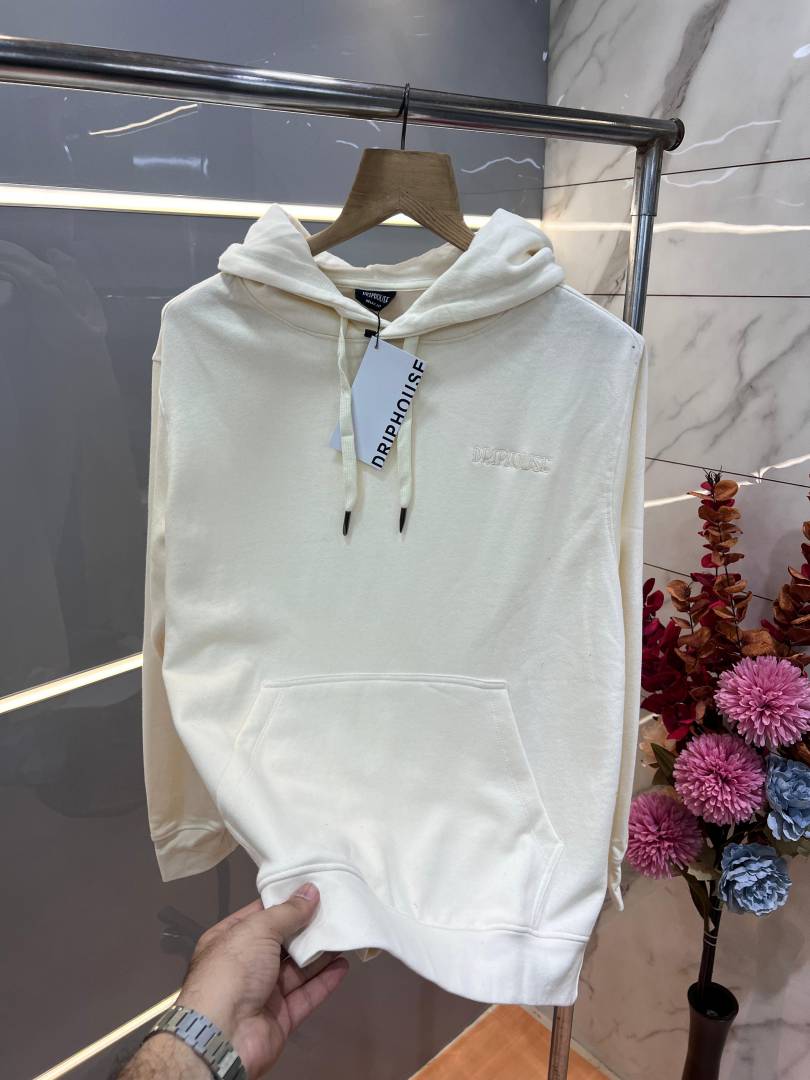 • Drip house Cream Imported Cotton Fleece Fabric Embroidery Logo Regular fit Hoodie 3086