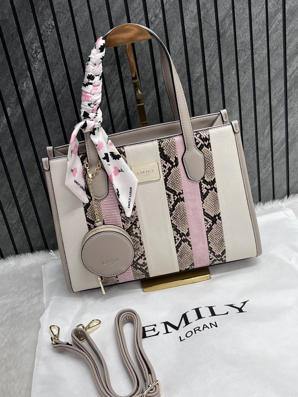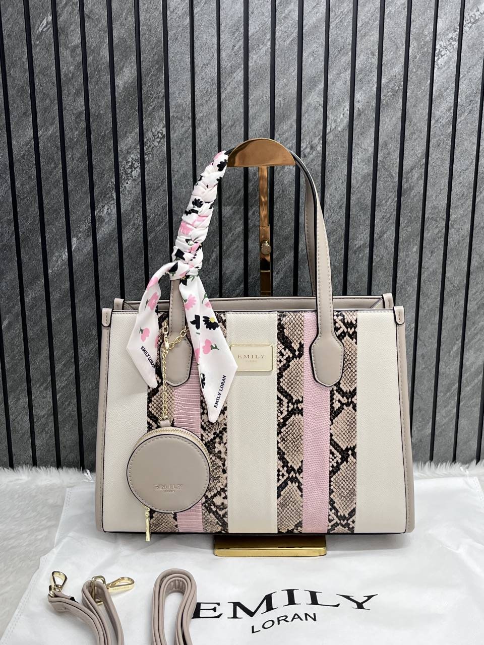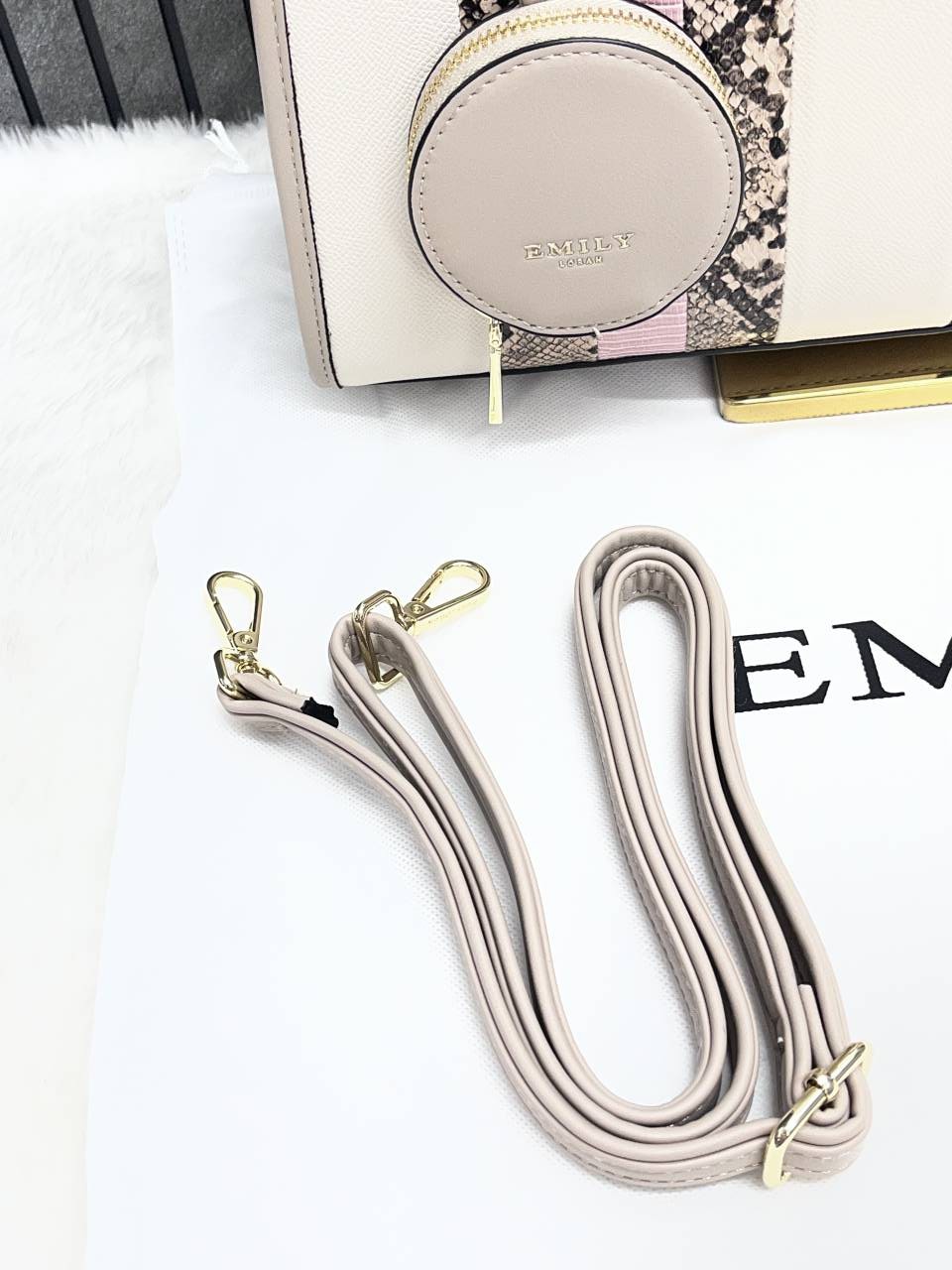 Emily Loran Beige Medium Satchel Bag Highend Leather Handbag With Dust Cover Packaging