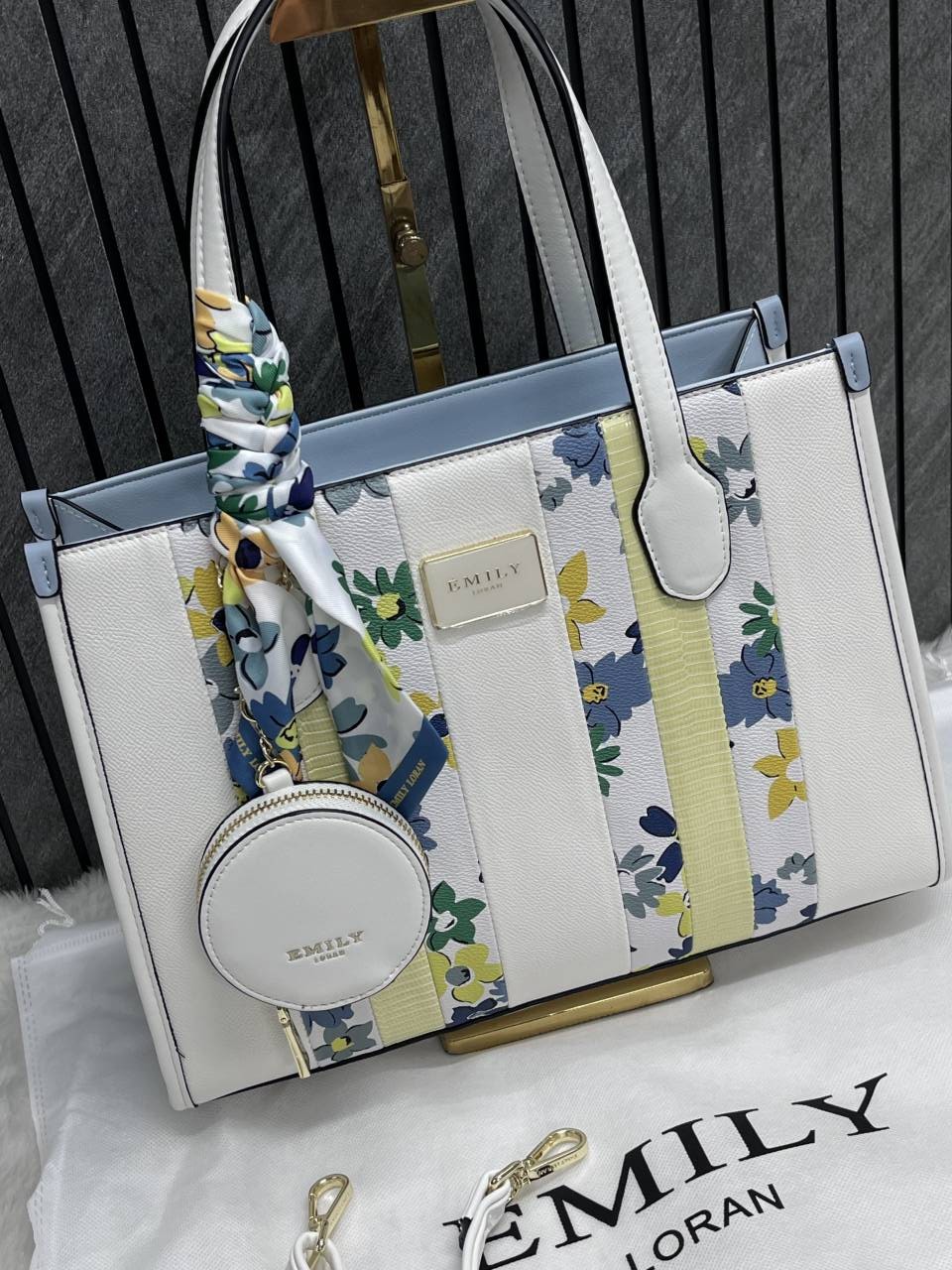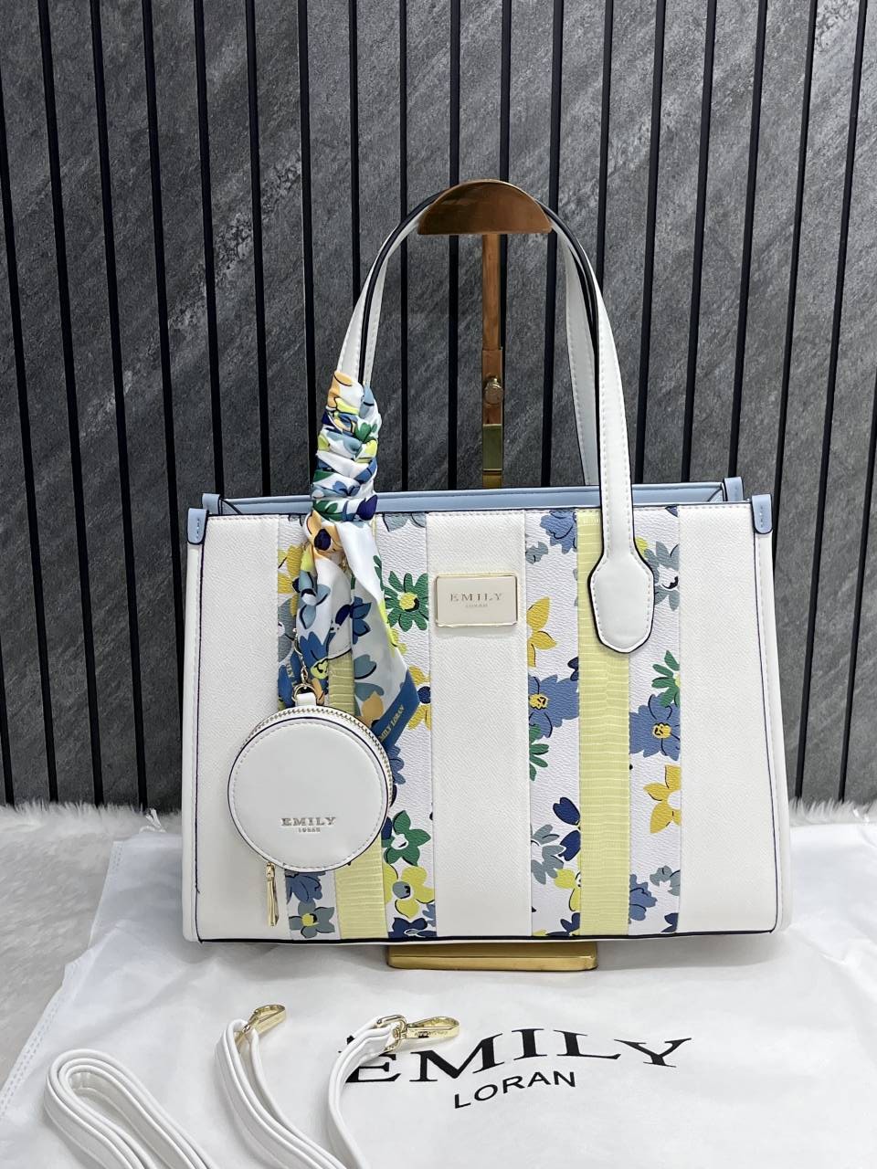 • Emily Loran White Medium Satchel Bag Highend Leather Handbag With Dust Cover Packaging