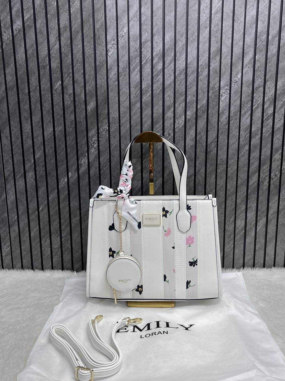 Emily Loran White Medium Satchel Bag Highend Leather Handbag With Dust Cover Packaging