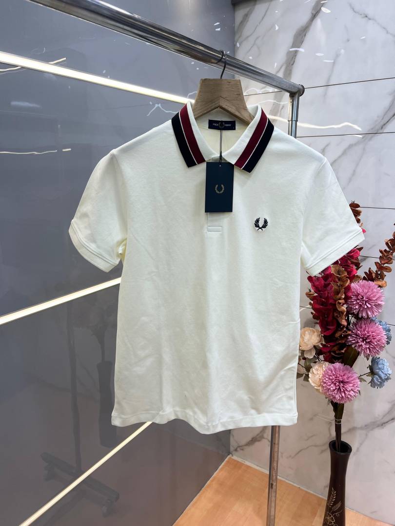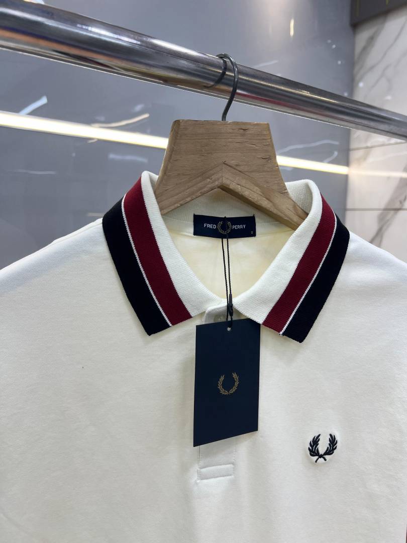 Fred Perr y White Premium Cotton Pique fabric Polo Tshirt with Collar Design and Embroidered Logo 3786