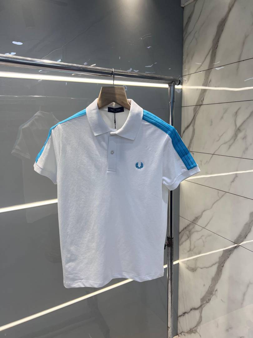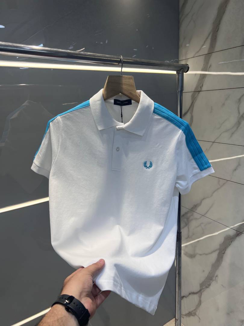 Fred Perr y White Premium Cotton Lycra Pique fabric Polo Tshirt with Collar Design and Embroidered Logo 2929