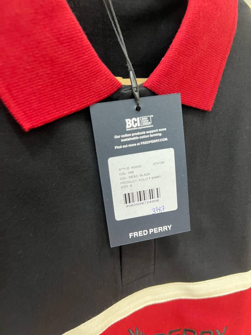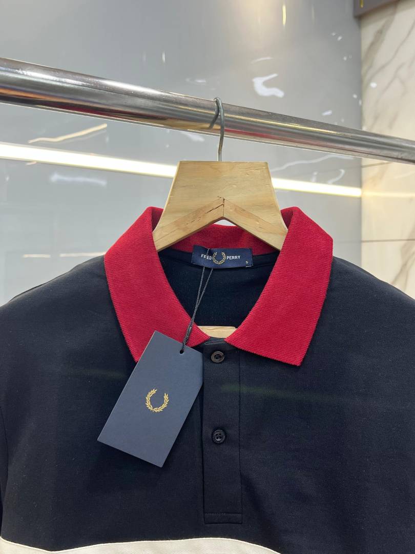 Fred Perr y Black Premium Cotton Pique fabric Polo Tshirt with Shoulder Design and Embroidered Logo 3789