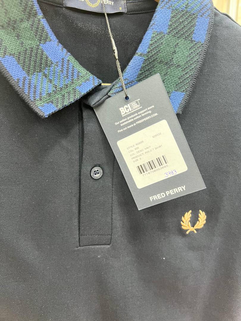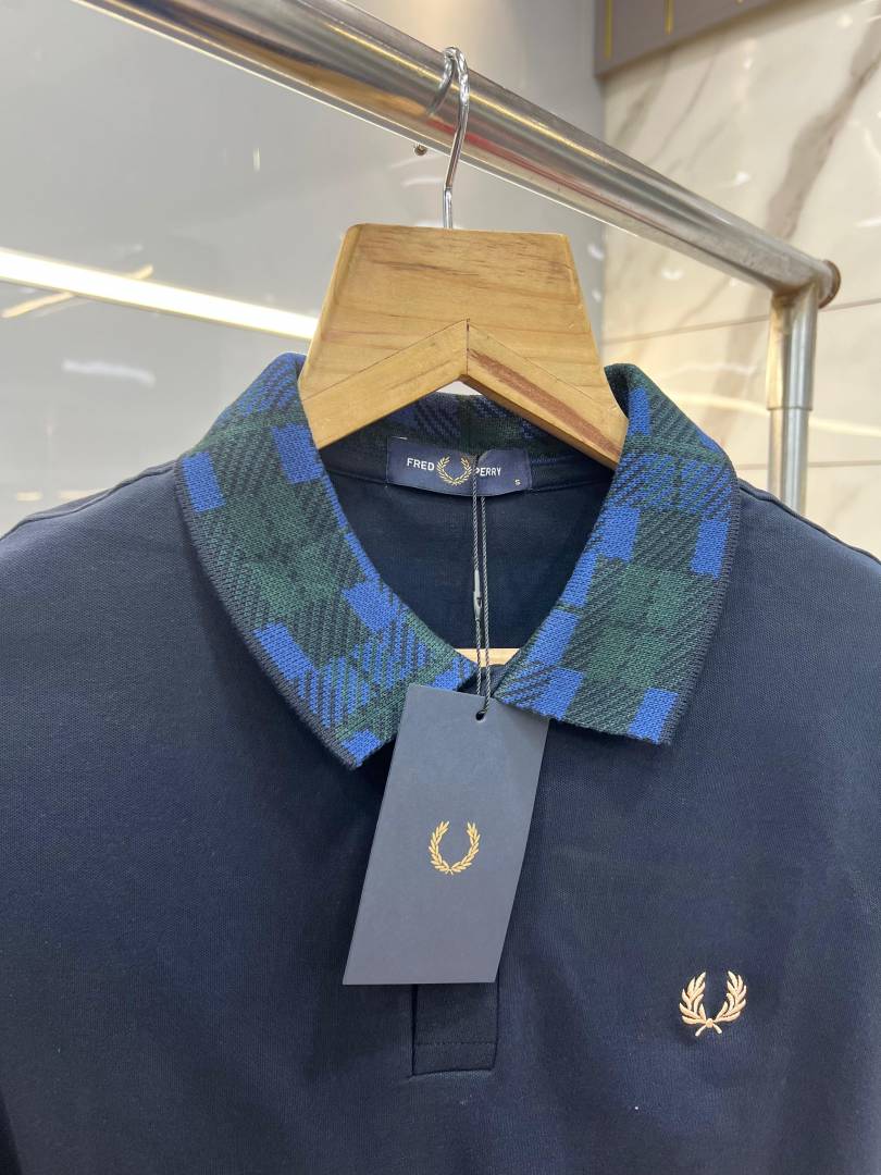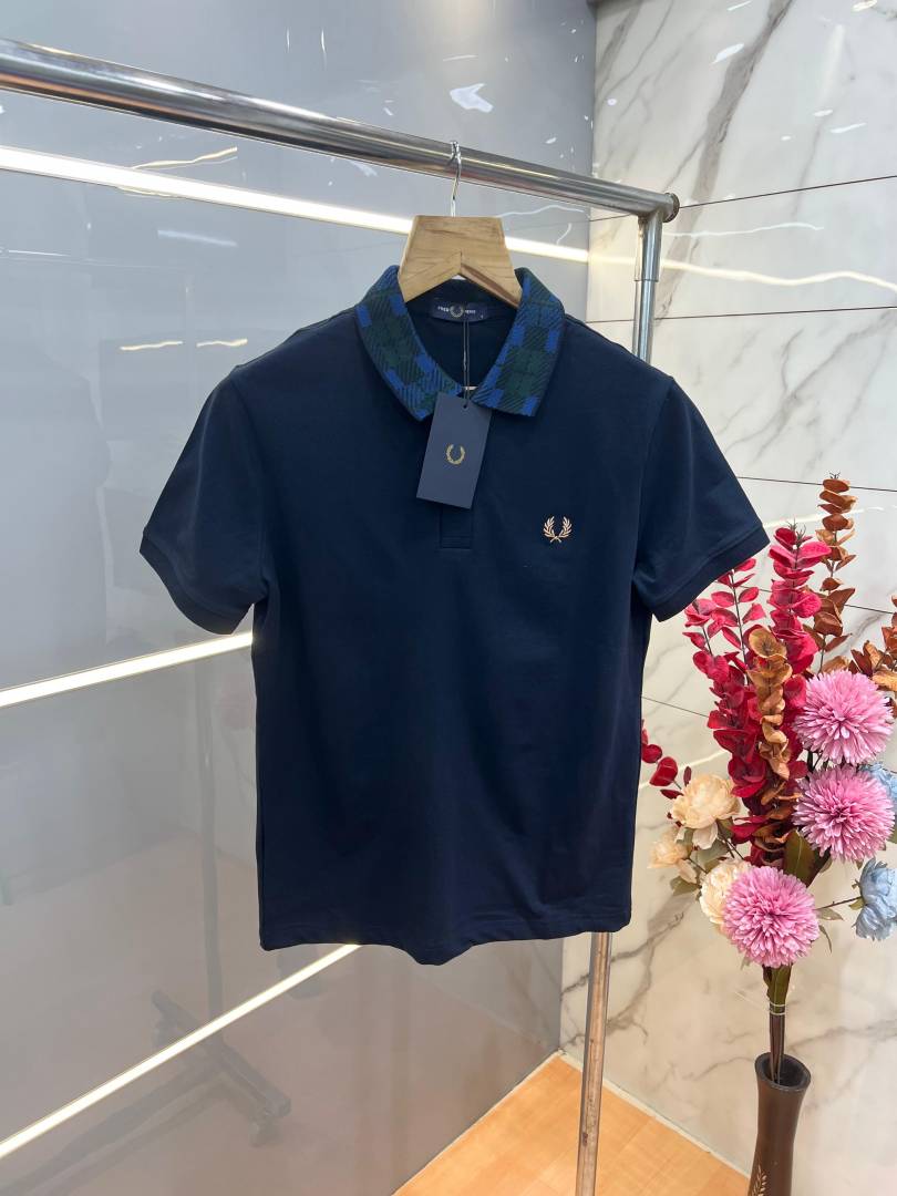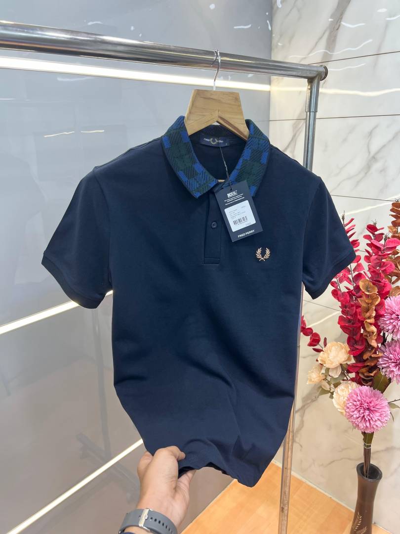 Fred Perr y Navy Premium Cotton Pique fabric Polo Tshirt with Collar Design and Embroidered Logo 3783