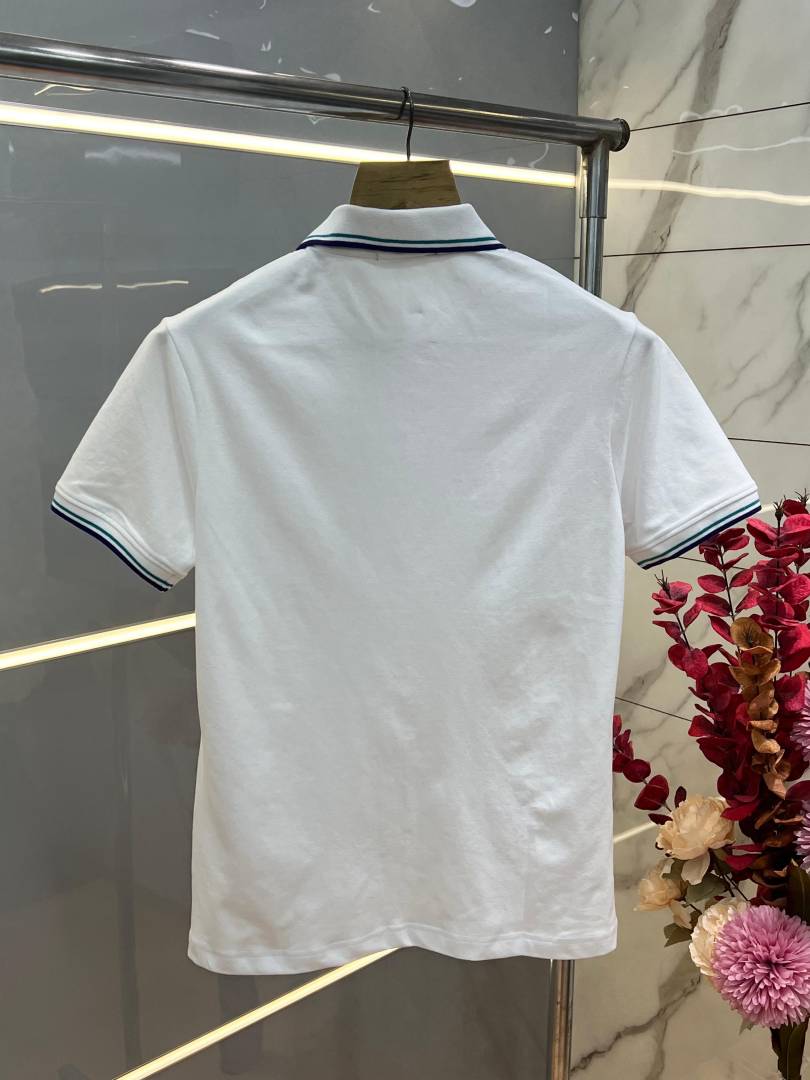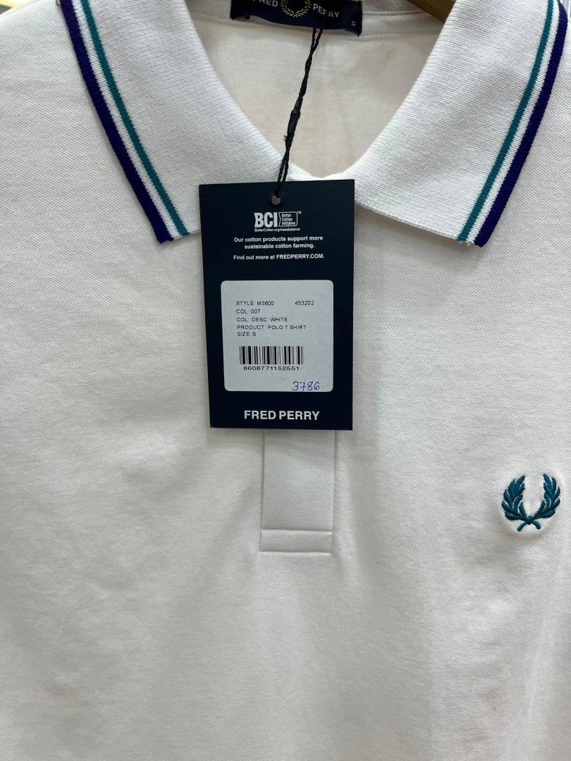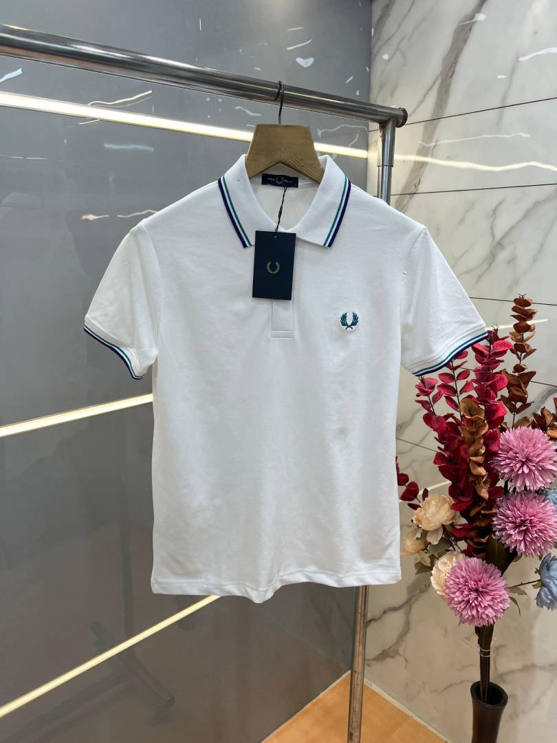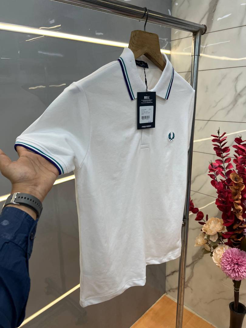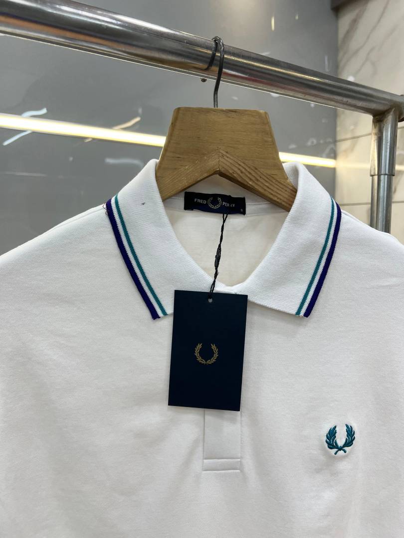 Fred Perr y White Premium Cotton Pique fabric Polo Tshirt with Collar Design and Embroidered Logo 3786