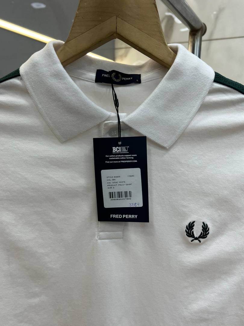 Fred Perr y White Premium Cotton Pique fabric Polo Tshirt with Collar Design and Embroidered Logo 3786
