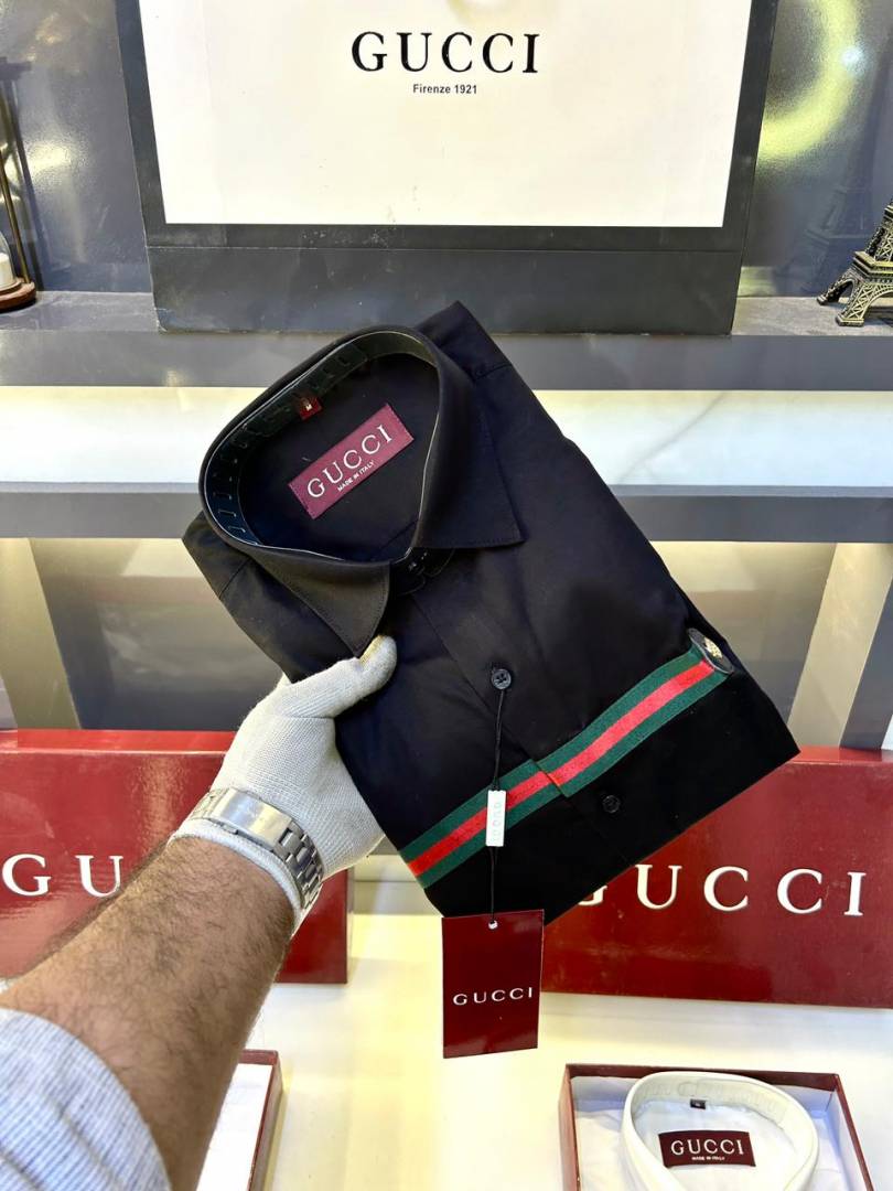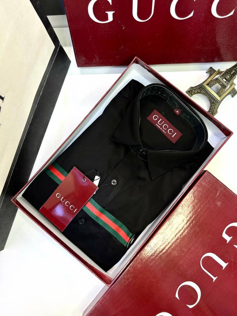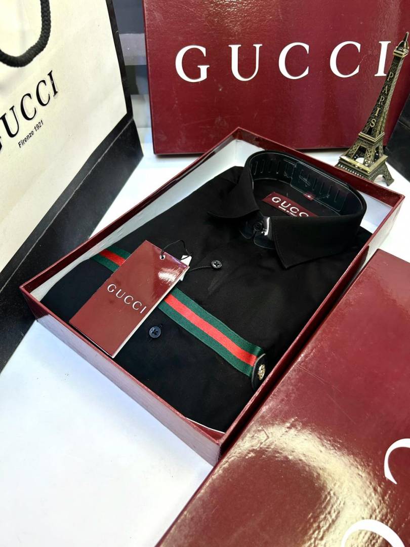 Gucc i Logo Black Premium Shirt With Brand Box Packing And Carry Bag F2851-BL
