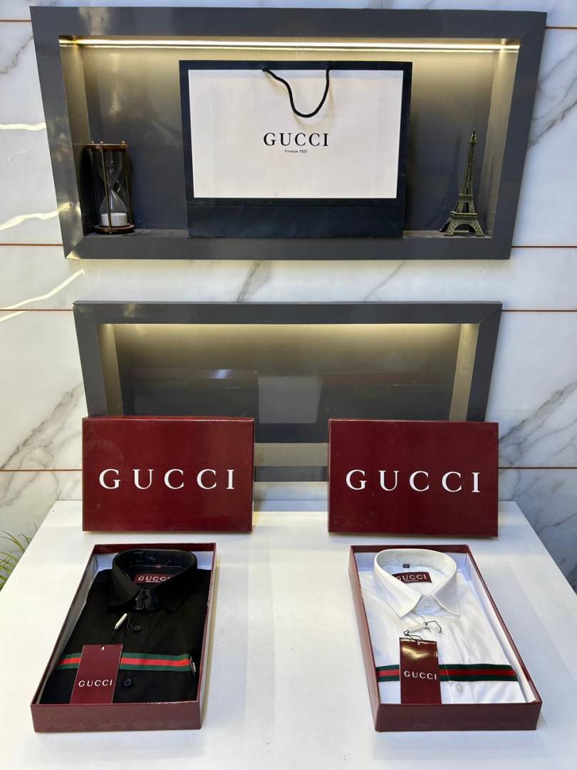 Gucc i Logo White Premium Shirt With Brand Box Packing And Carry Bag F2851-WH
