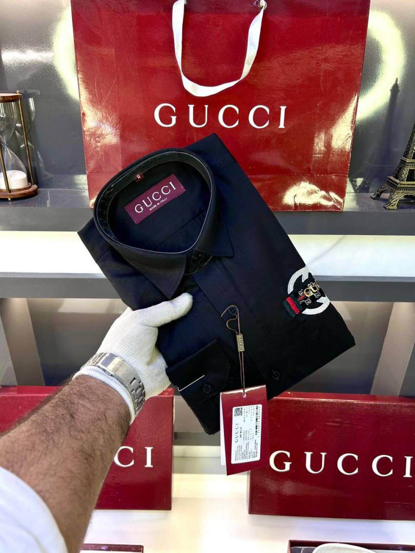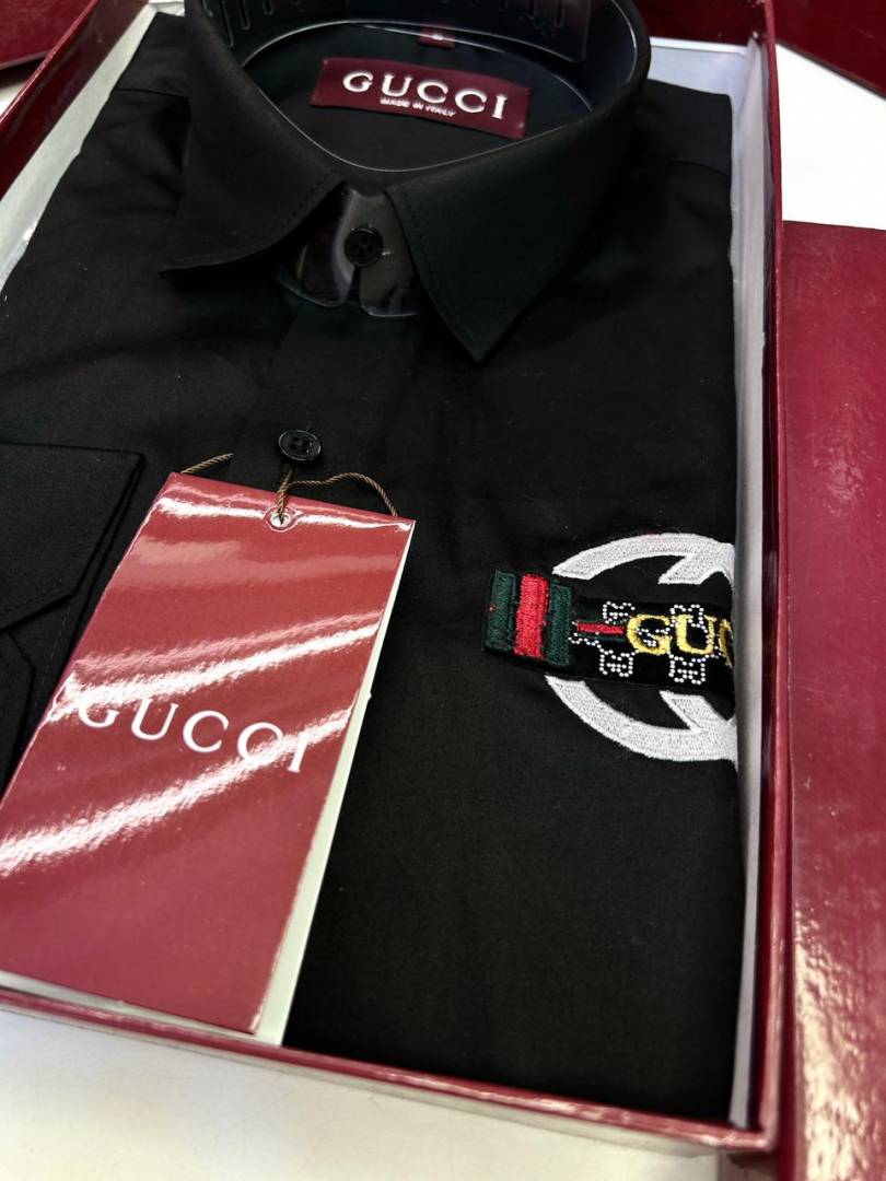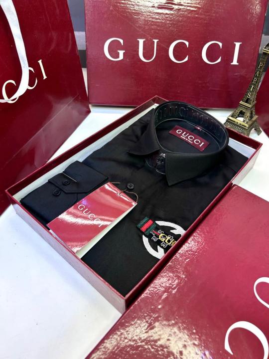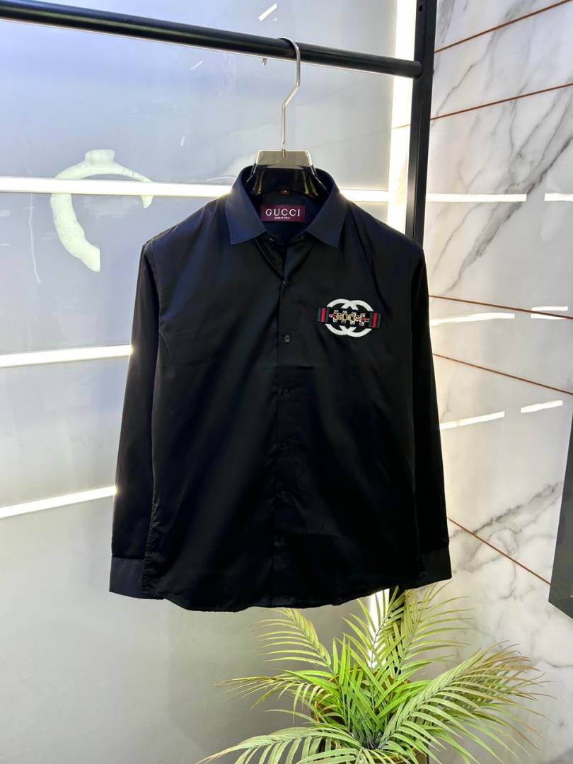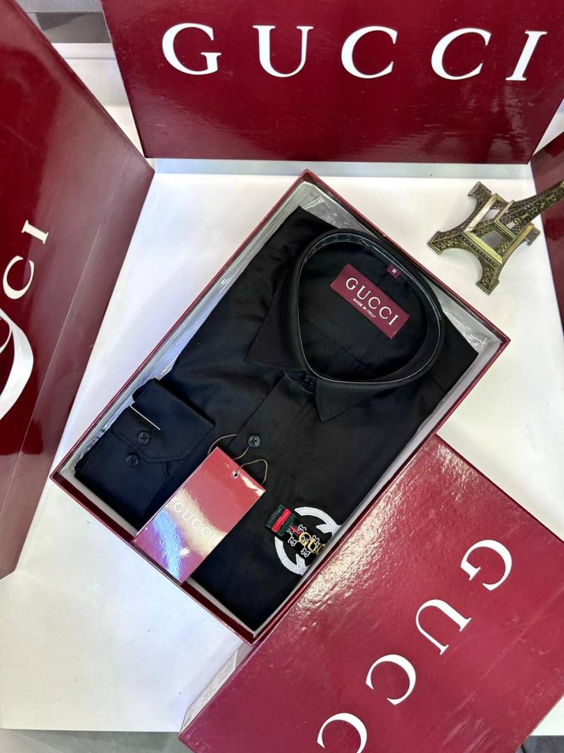 Gucc i Logo Black Premium Shirt With Brand Box Packing And Carry Bag F2855-BL