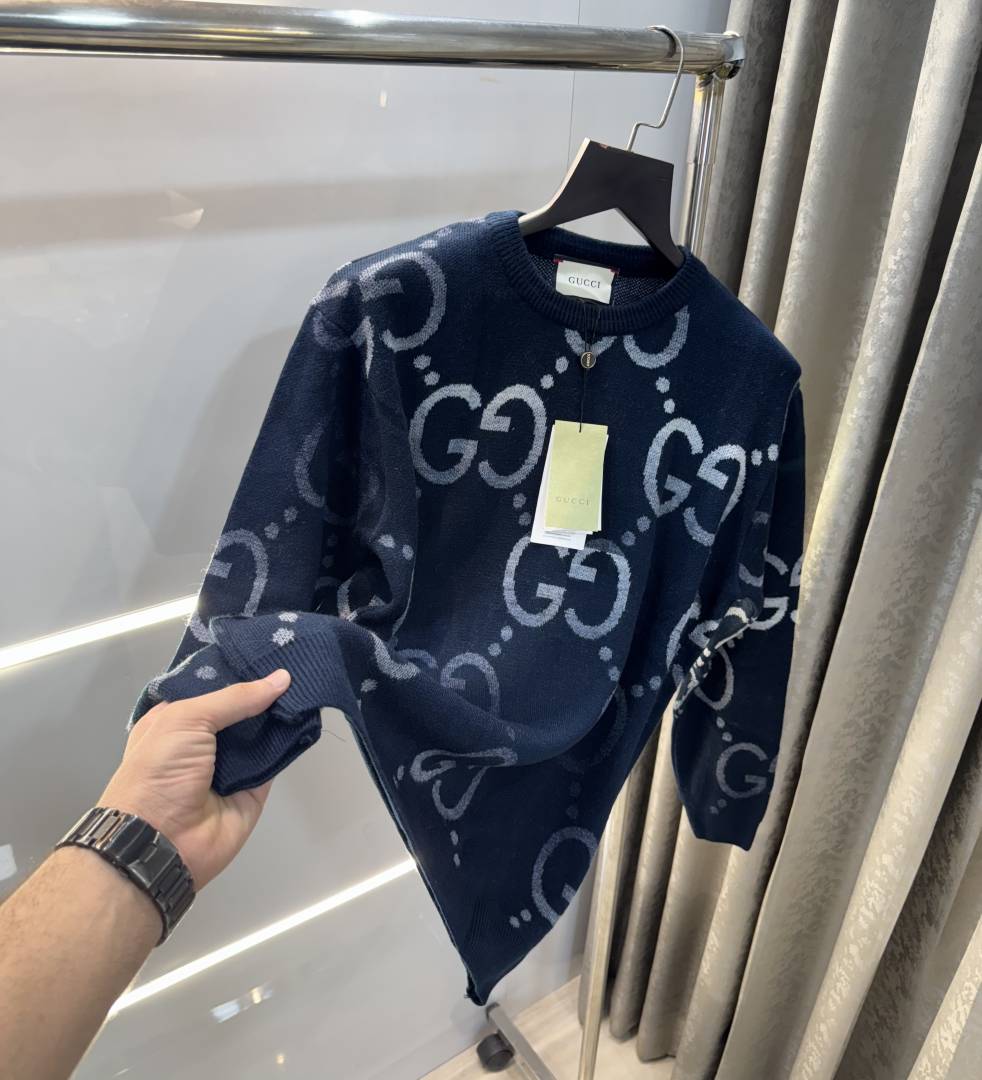 • Gucc i Navy Blue Monogram Knitted Imported Pull Over