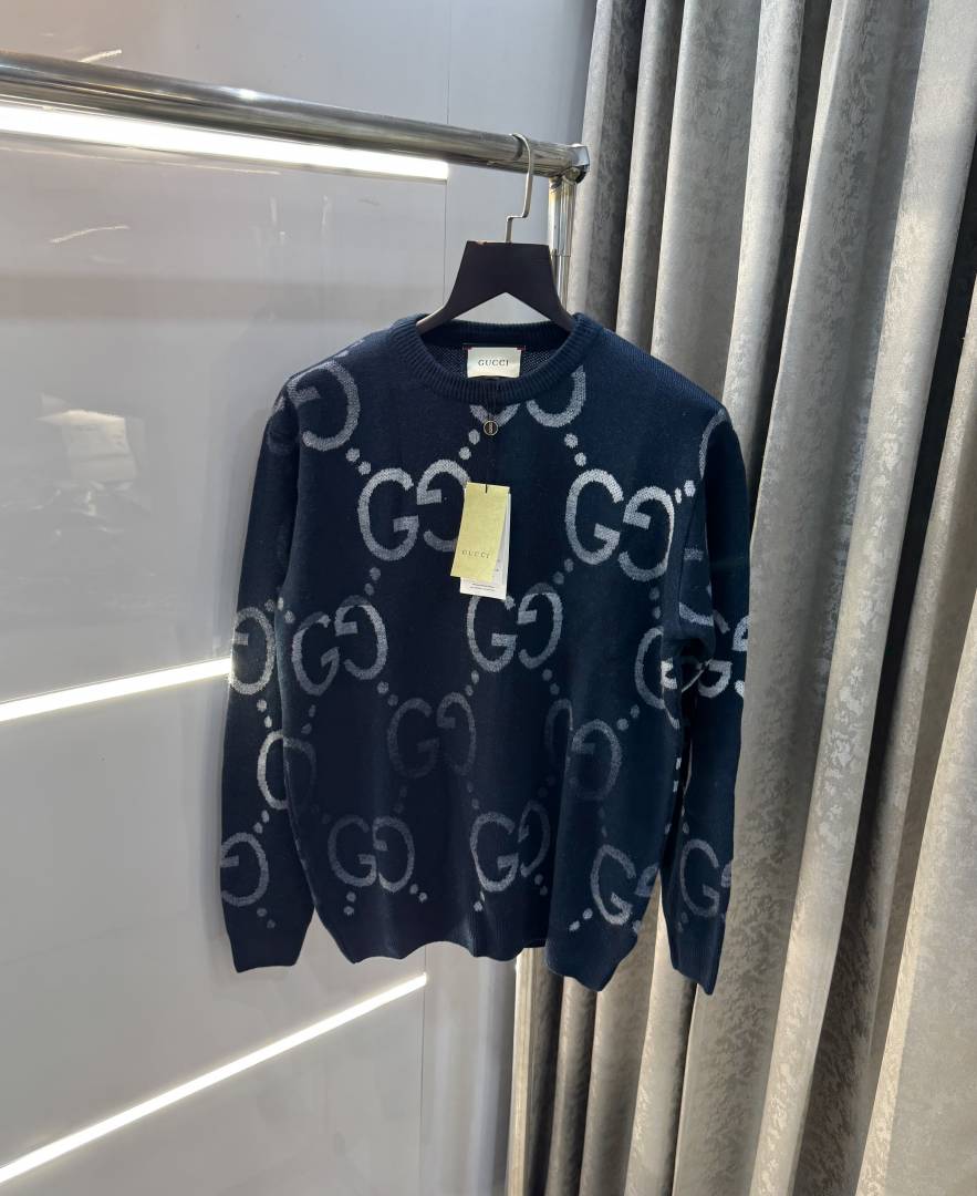 Gucc i Navy Blue Monogram Knitted Imported Pull Over
