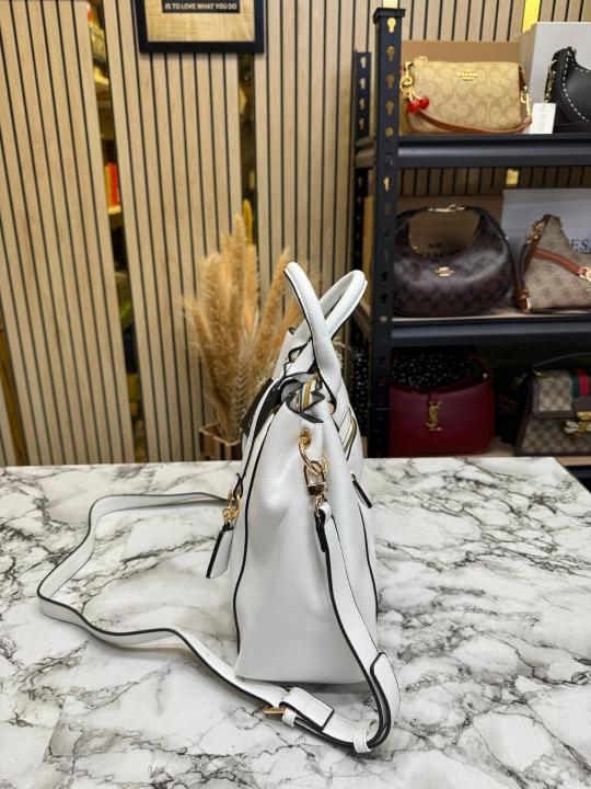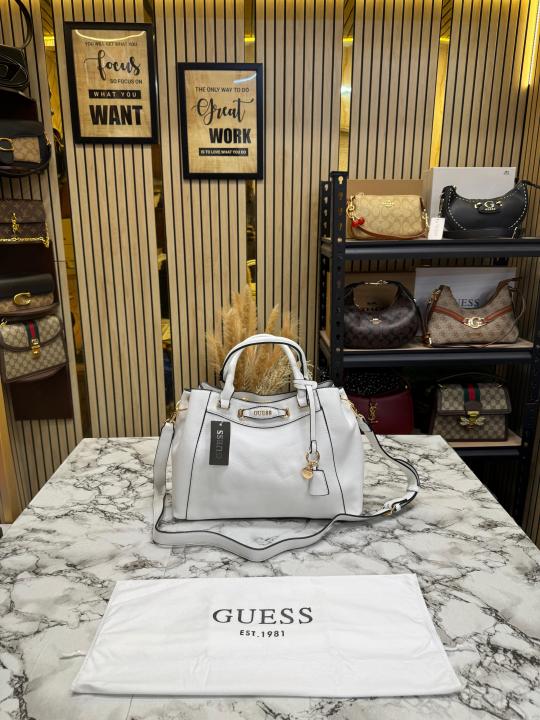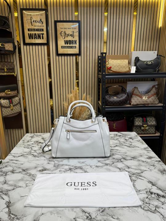 • Guess Emera Logo Satchel Hand Bag With Dust Bag (White)
