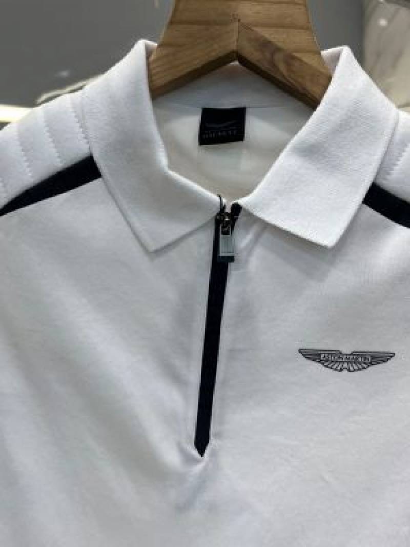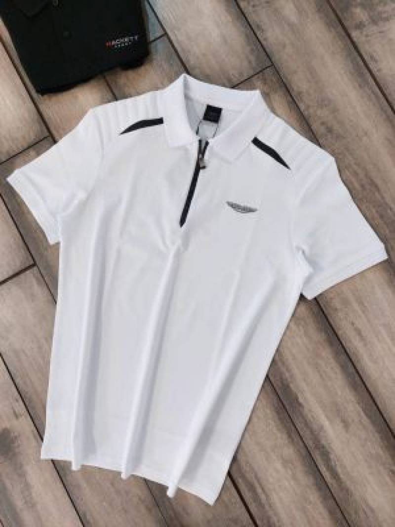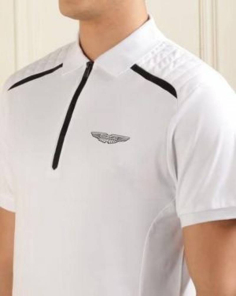 Hacke t White Premium 240 gsm interlock compact cotton fabric Polo Tshirt with Shoulder Design and Emboss Logo 3440