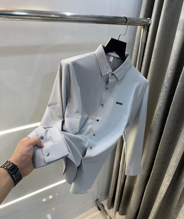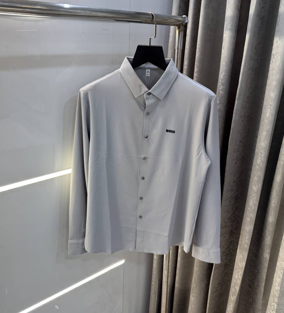 Lacost e Light Grey Premium Shirt Oxford Cotton With custom Branded Button Tagging And Brand Poly Bag 2808