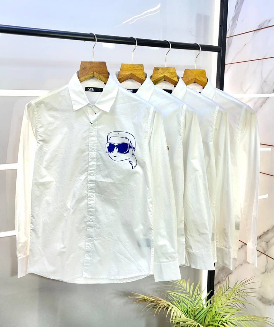 Karl Lagerfeld Imported Back Printed Oxford Lycra Premium White Shirt With Brand Packing F3103-W3