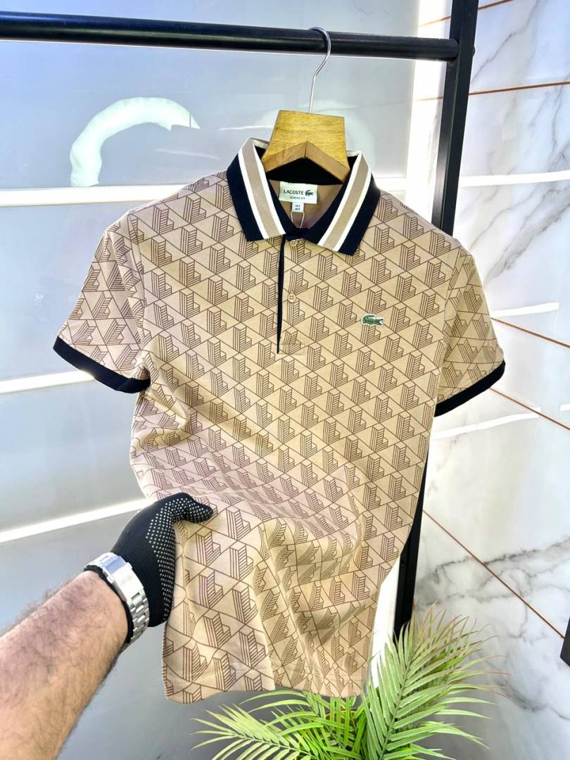 Lacost e Beige Monogram Polo Premium Collar Neck T-shirt F3184-BE