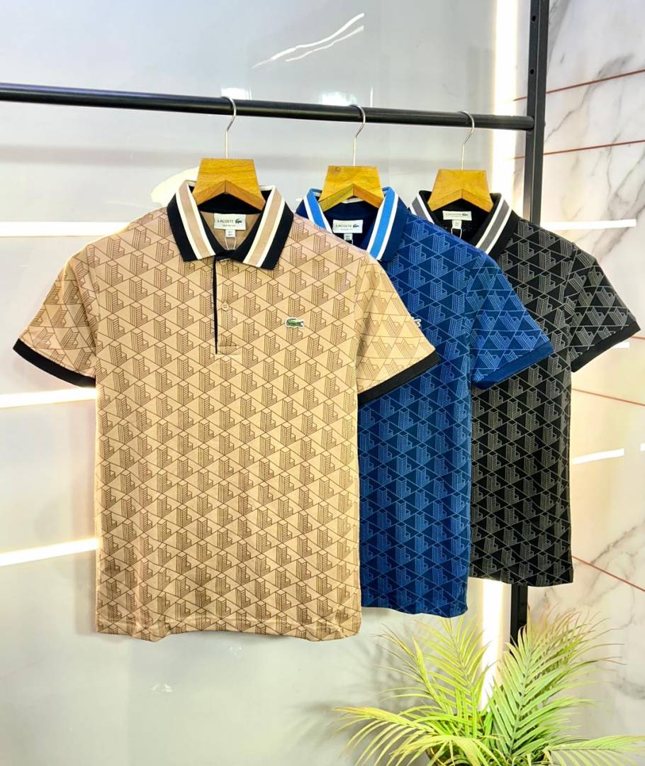 Lacost e Blue Monogram Polo Premium Collar Neck T-shirt F3184-BU