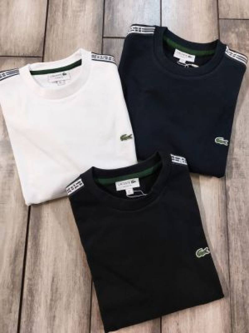 • Lacost e White Premium Imported Interlock Cotton 380 GSM Shoulder Strip and Embroidered Logo Sweatshirt 3392