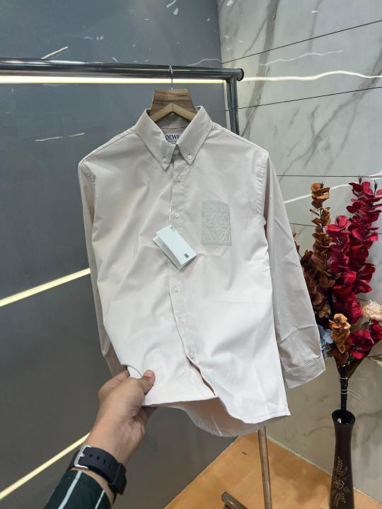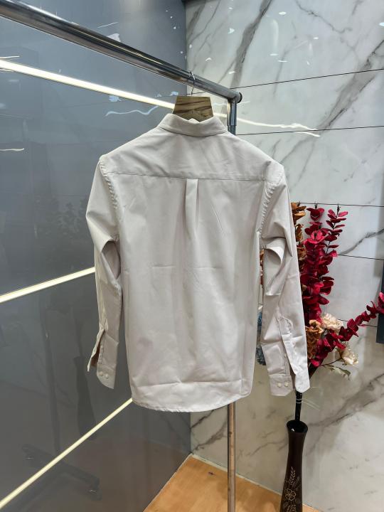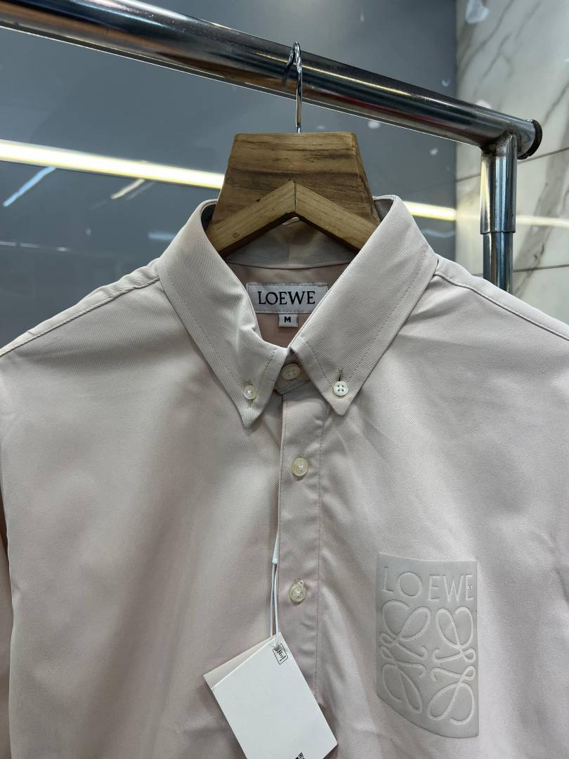 Loew e Cream Premium Oxford Cotton Fabric Shirt Emboss Logo custom Branded Button Tagging And Poly Bag 4044