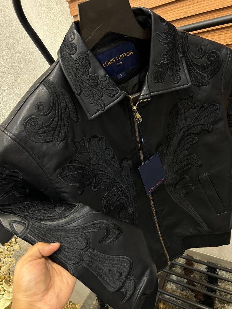 Loui_s Vuitton Embroidered Turkey Imported Premium 100% Pure Leather Jacket