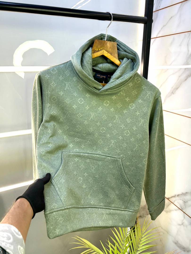 Louis_Vuitton Imported Monogram Print Green Super Premium Hoodie F1122-GR