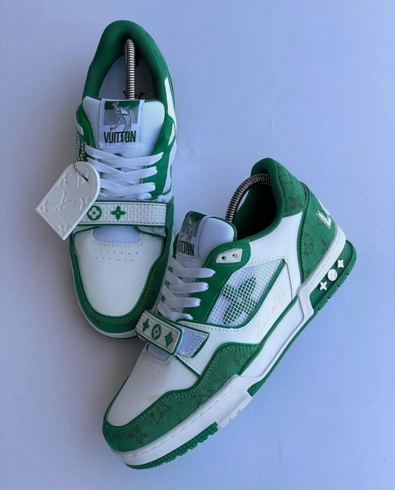LOUIS VUITTON LV TRAINER SNEAKER GREEN WHITE SI U C P