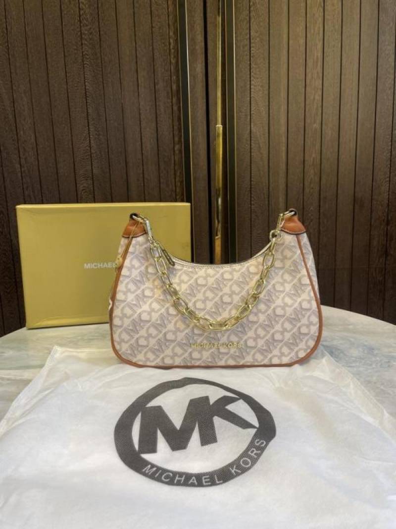 Michael-Michael-Kors Cora Medium Signature PVC Zip Pouchette Crossbody Bag Brown with box 70