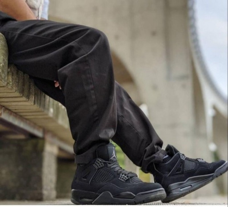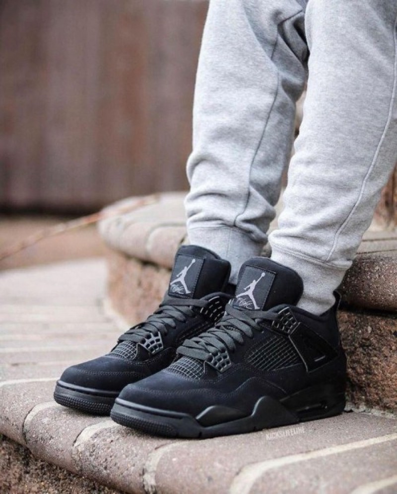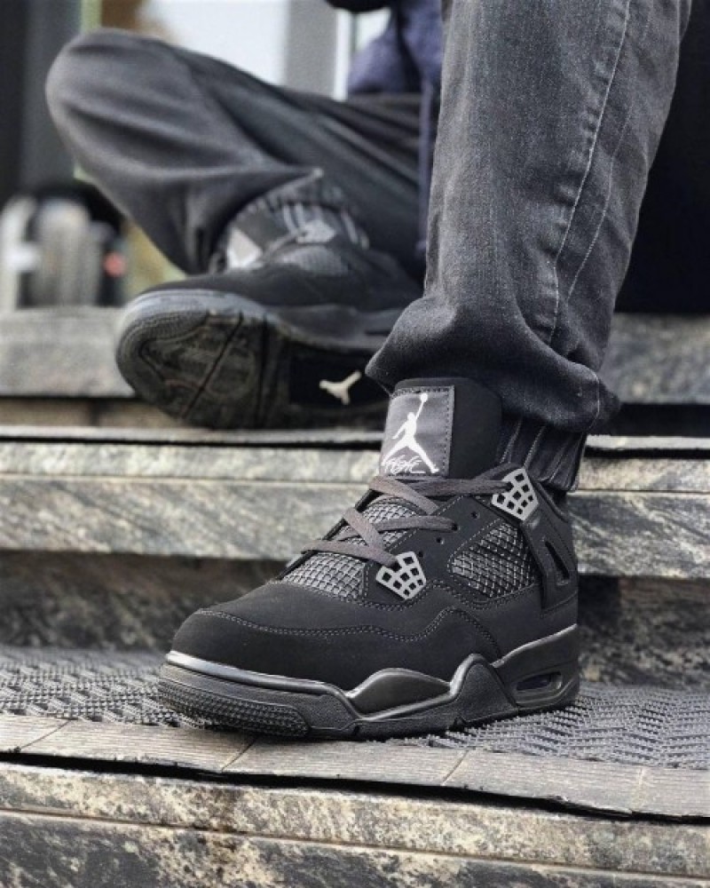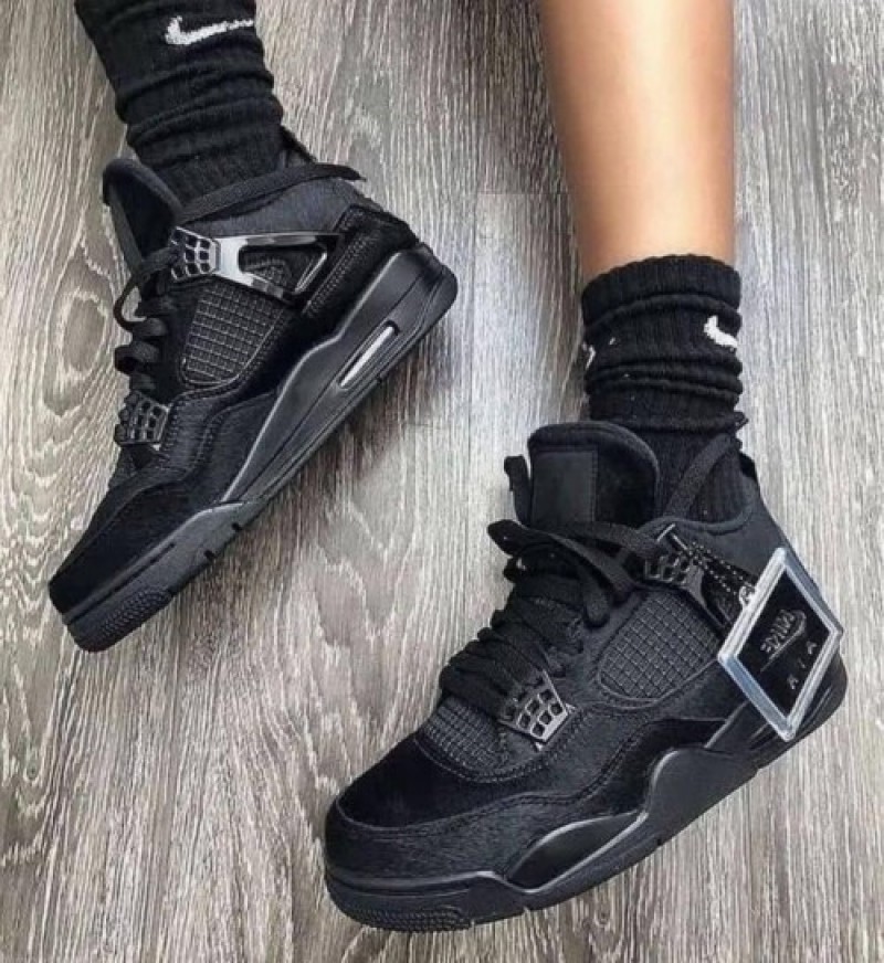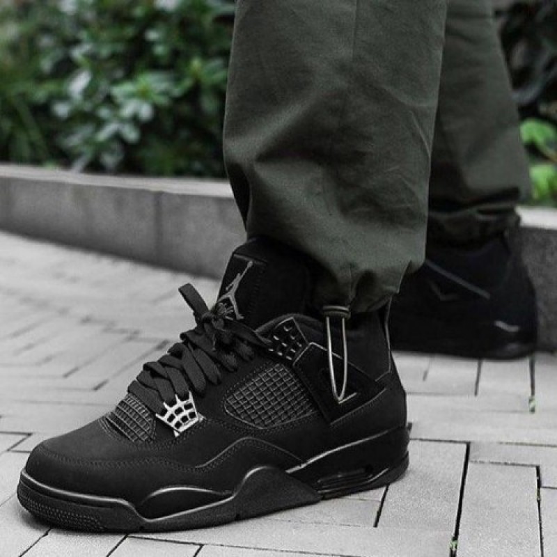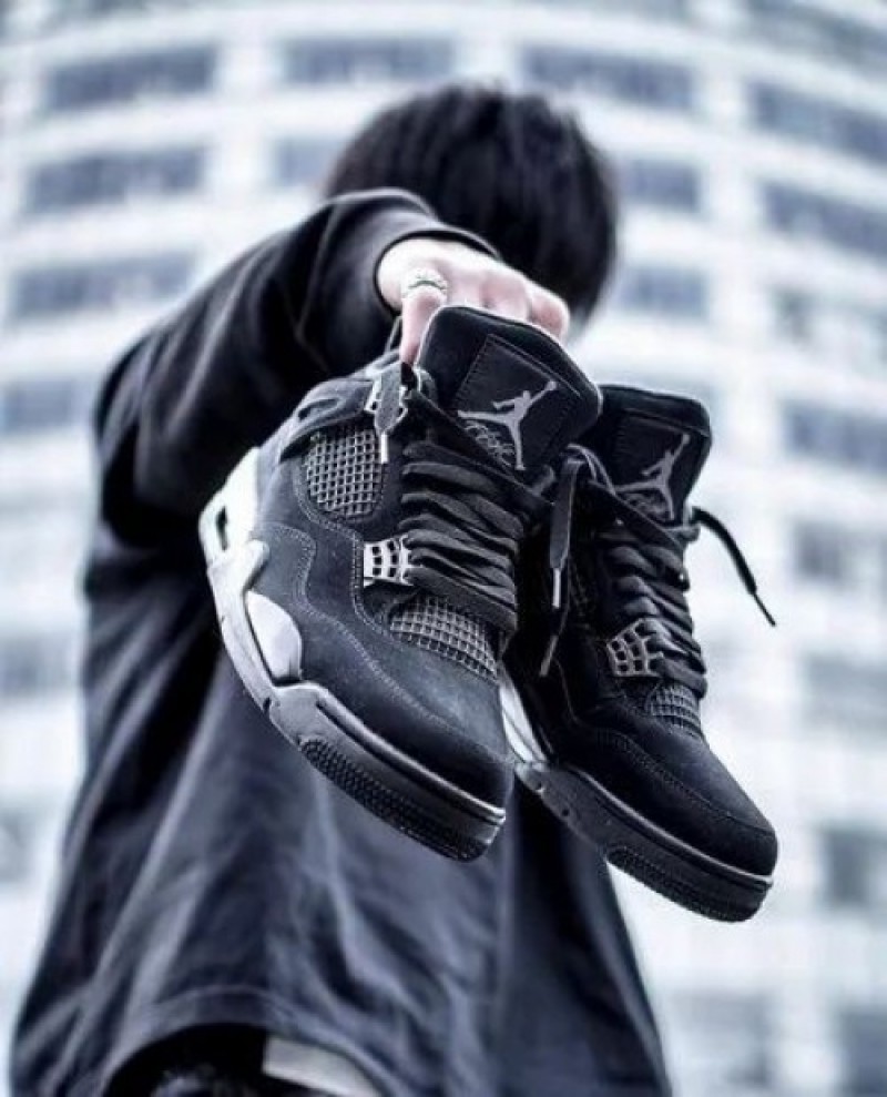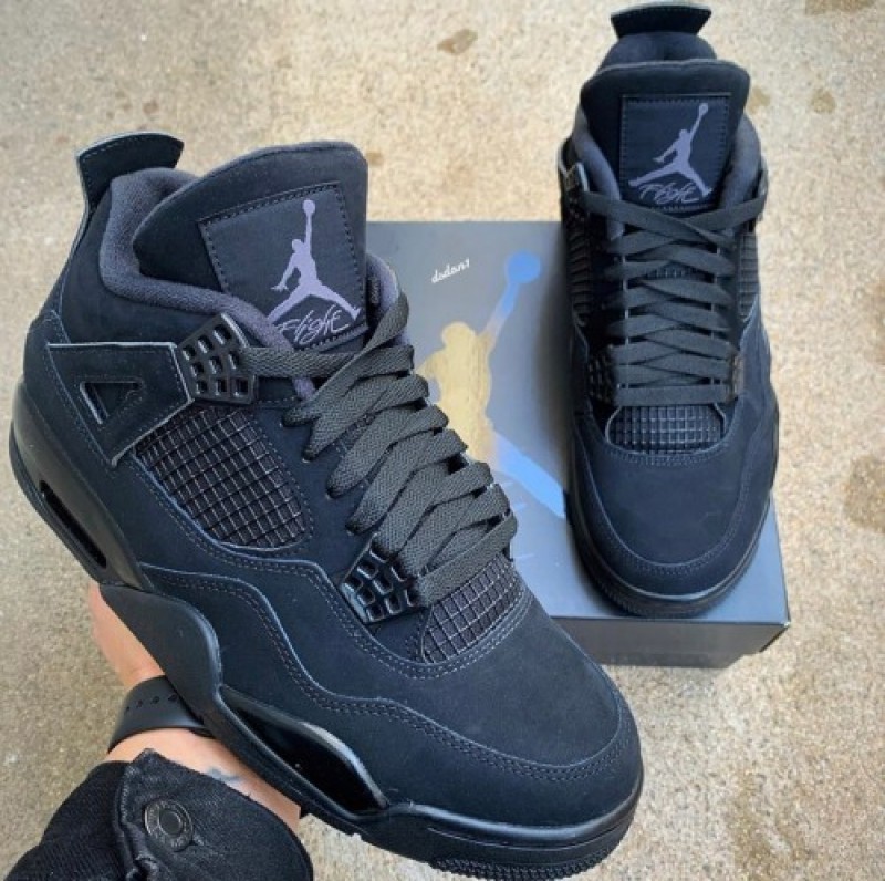Nike Jordan Retro 4 BLACK CAT LEATHER SHINE