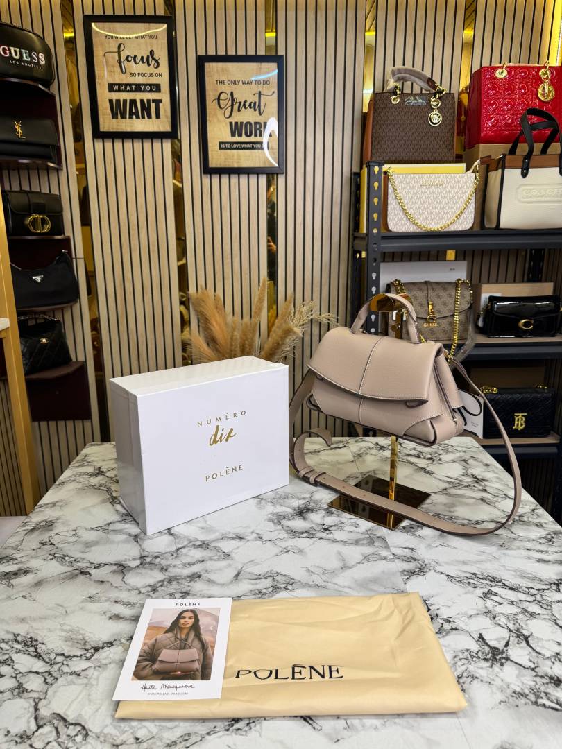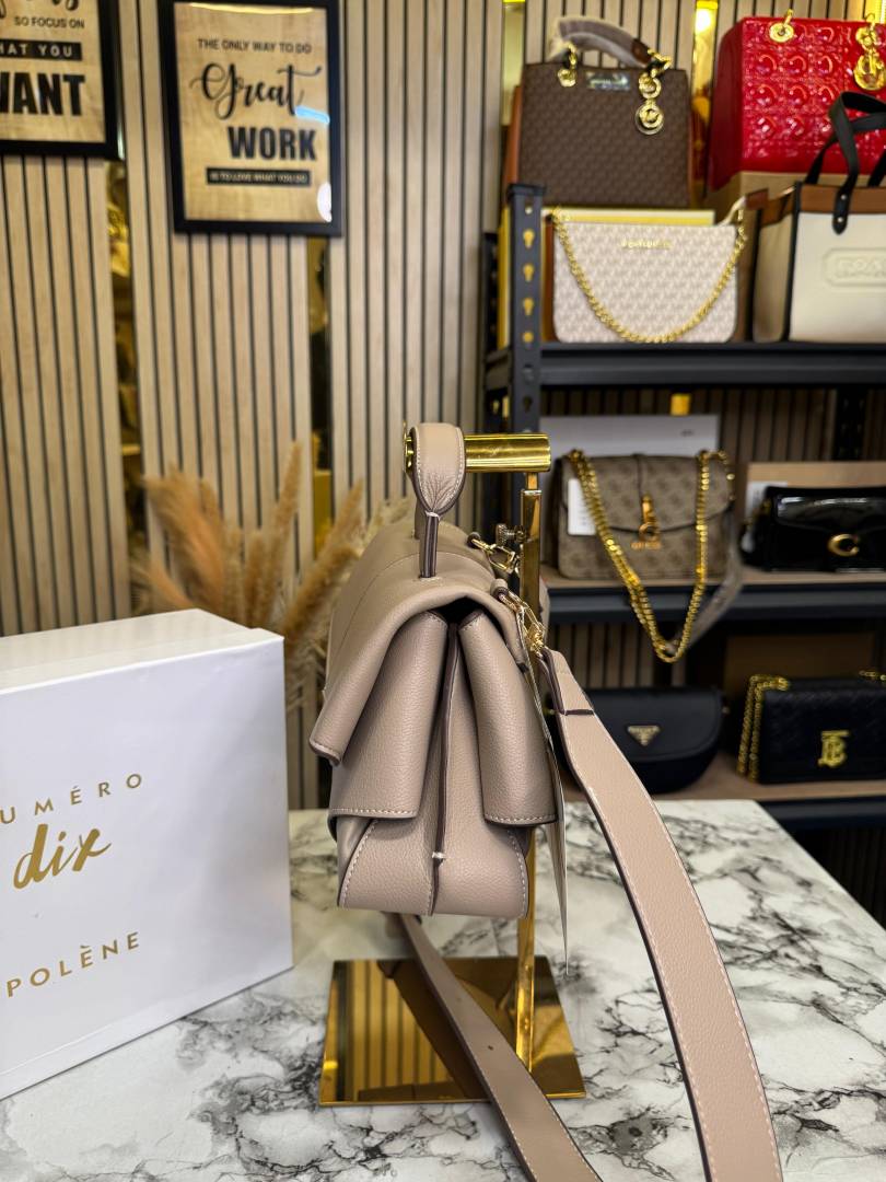• Polene Numero Un Leather Top-Handle Medium Bag (Brown-P06394)