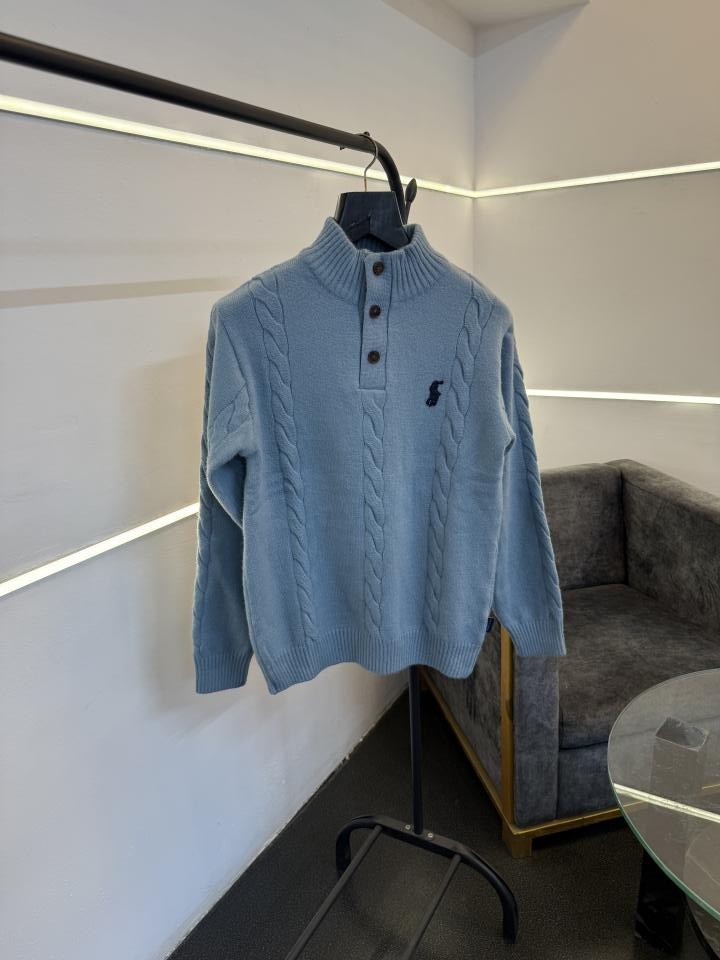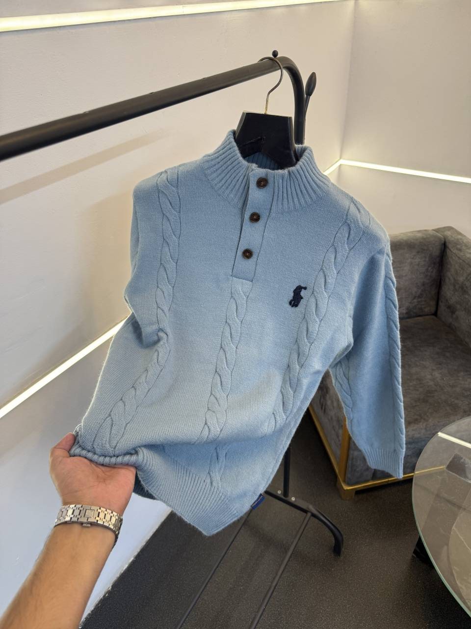 ? *Ralph lauren polo imported yarn soft feel broad cable knitted T neck brand button placket sweater with embroidery logo on front now in stock*?