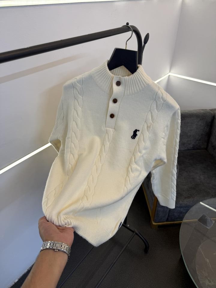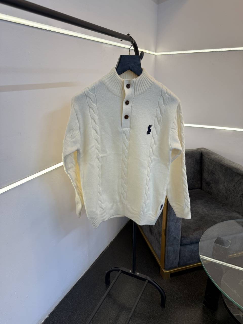 ? *Ralph lauren polo imported yarn soft feel broad cable knitted T neck brand button placket sweater with embroidery logo on front now in stock*?