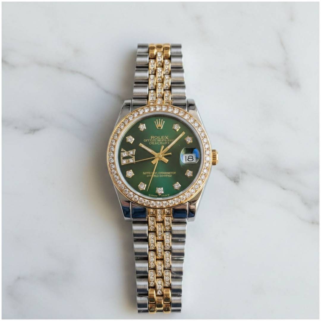• Role_x Oyester Perpetual Date Just 2Ton-Gold-Green