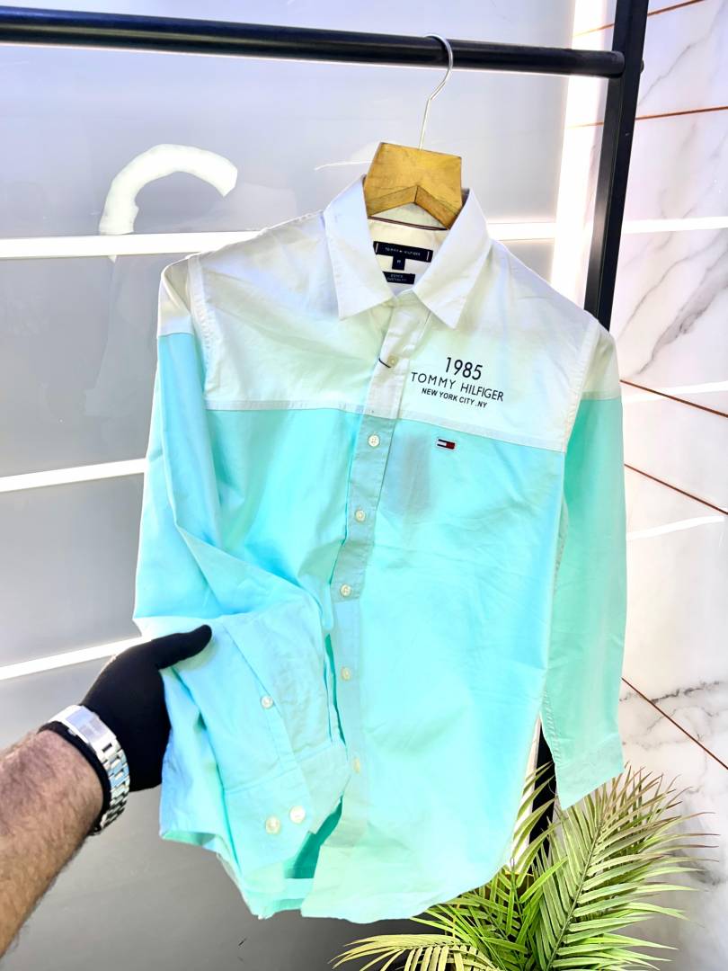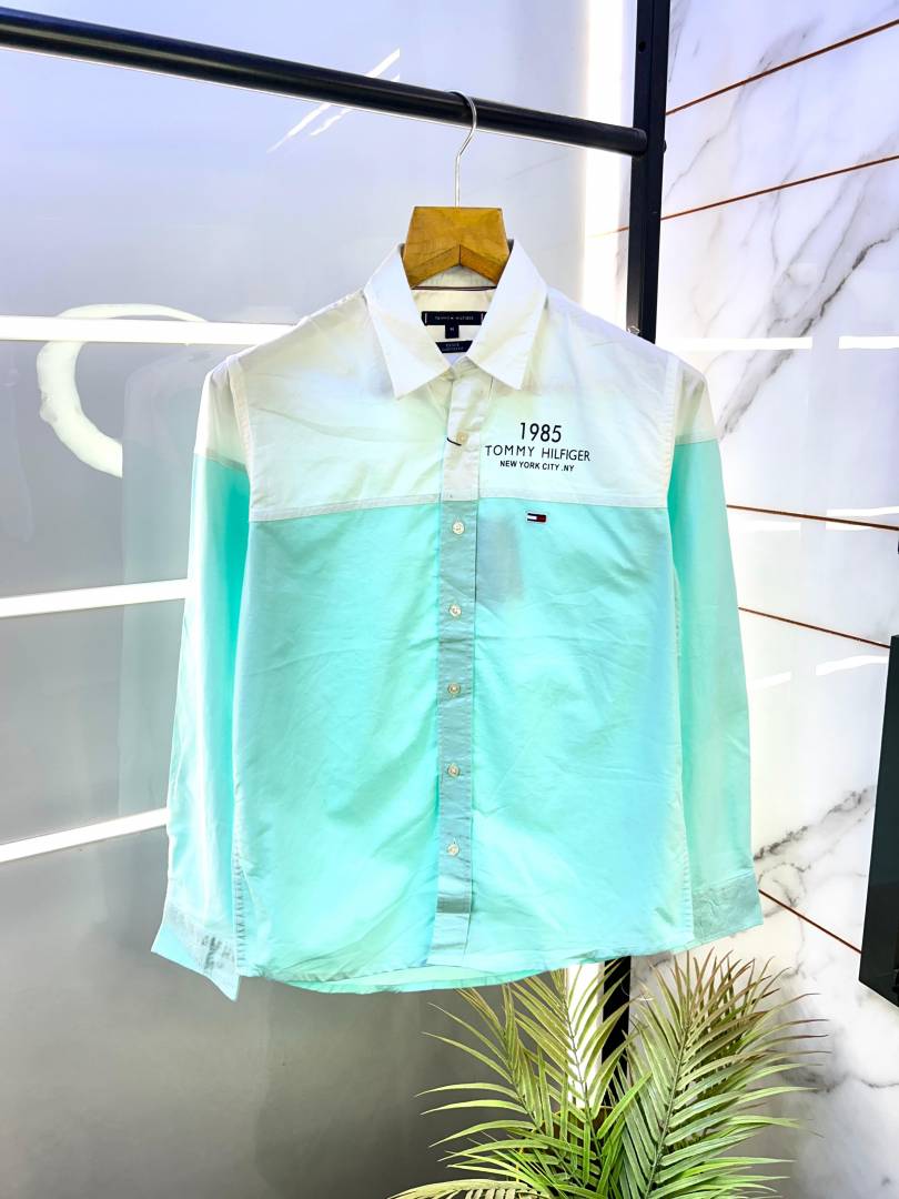 Tommy_Hilfiger Green Oxford Lycra Premium Printed Shirts F2751-G1