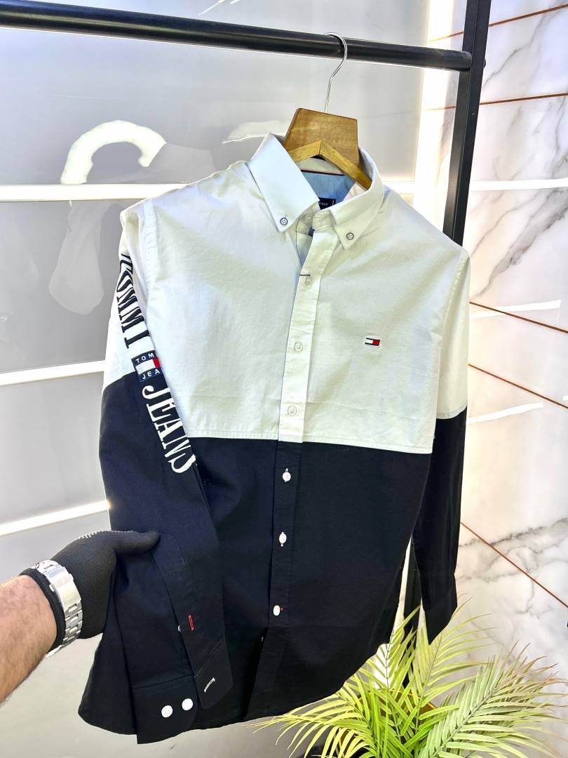 Tommy_Hilfiger White-black Oxford Lycra Premium Printed Shirts F2734-WB