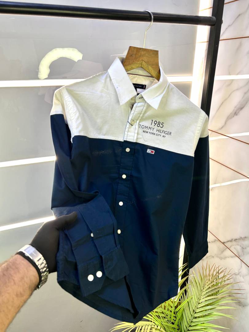Tommy_Hilfiger Navy Oxford Lycra Premium Printed Shirts F2751-NY
